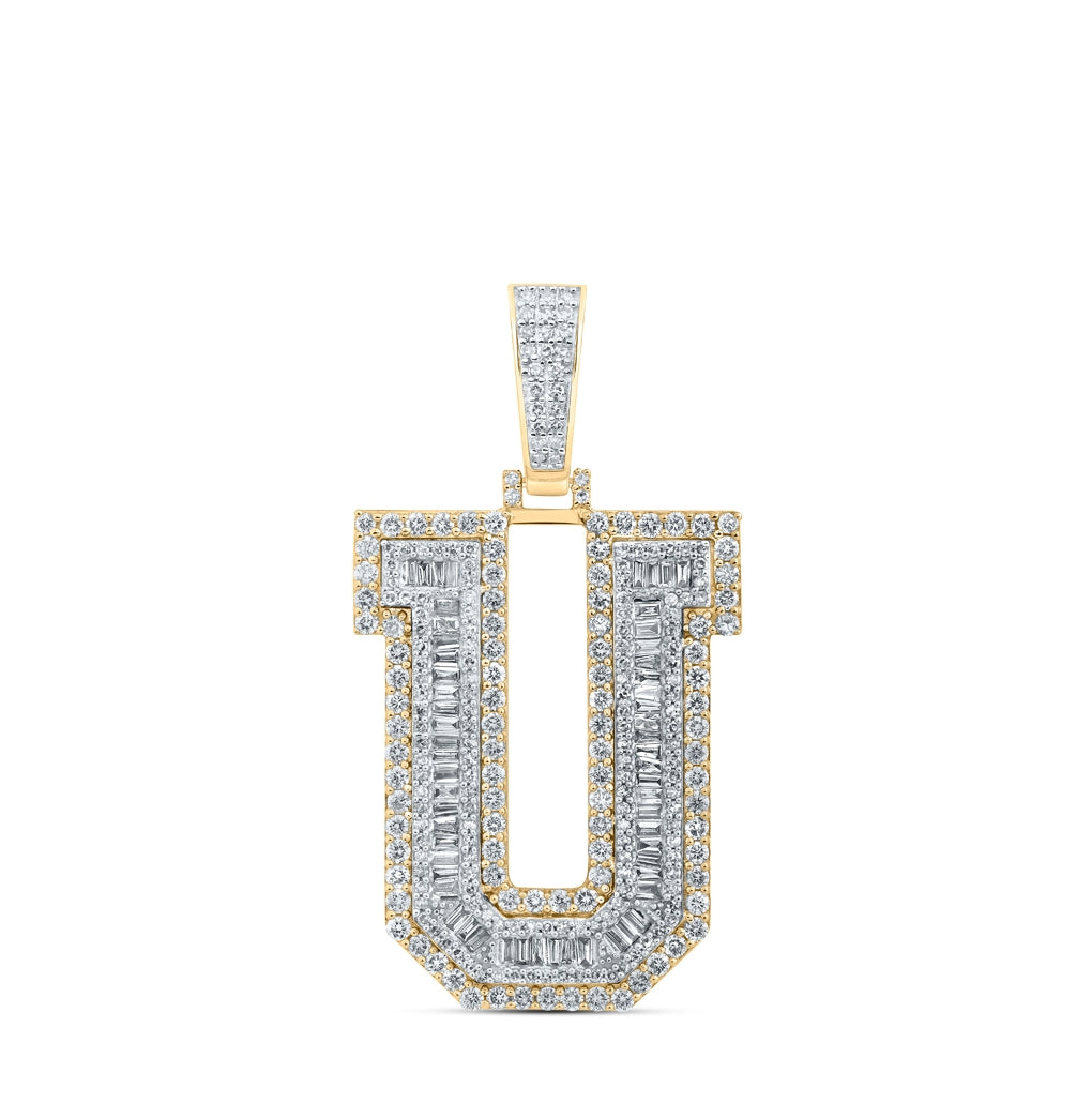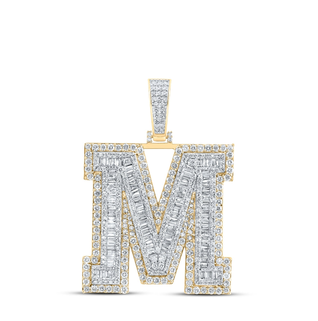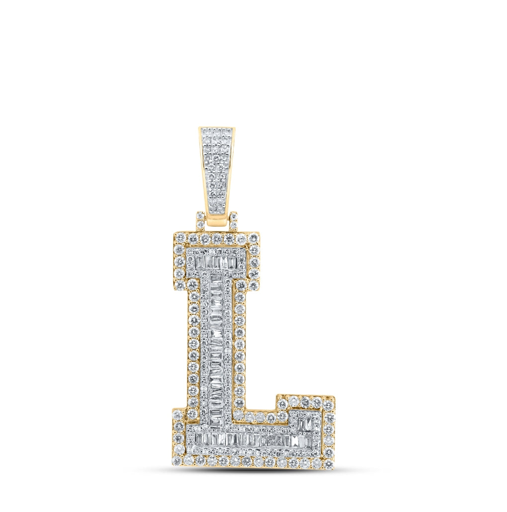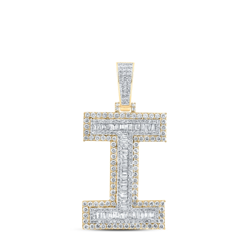 10K Yellow Gold Mens Baguette Diamond Initial Letter Charm Pendant