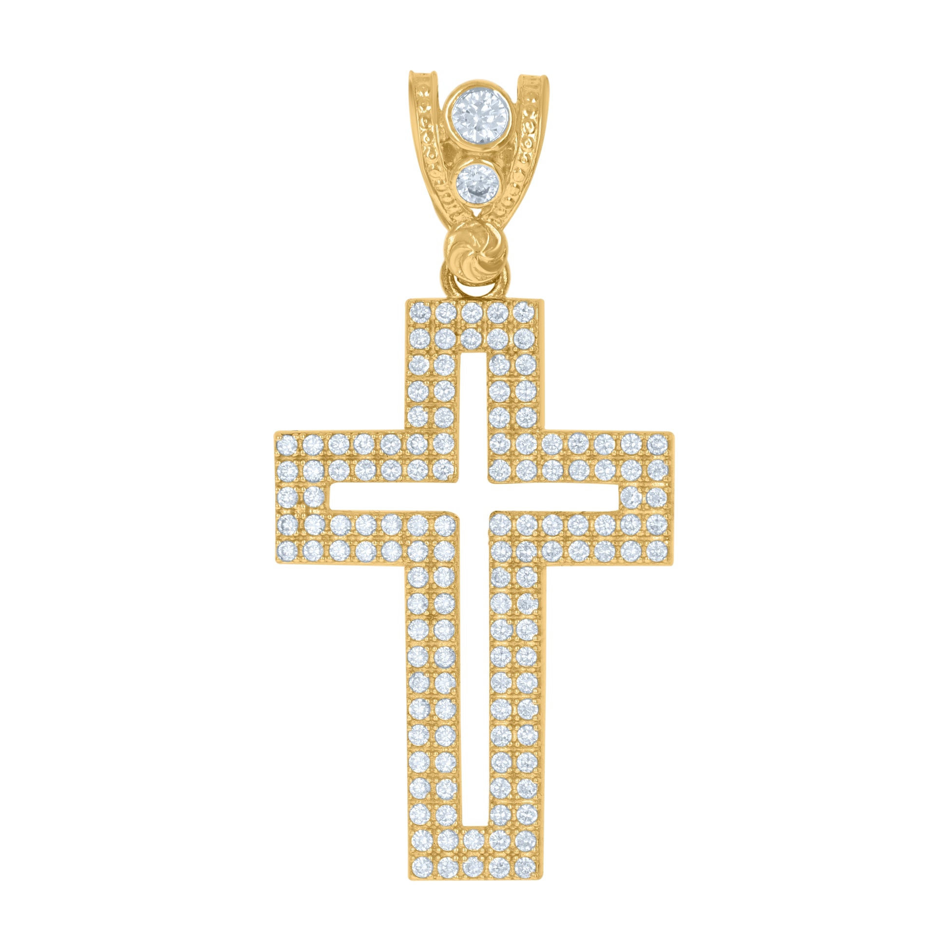 10K Yellow Gold Mens Cubic Zirconia Cross Religious Charm Pendant