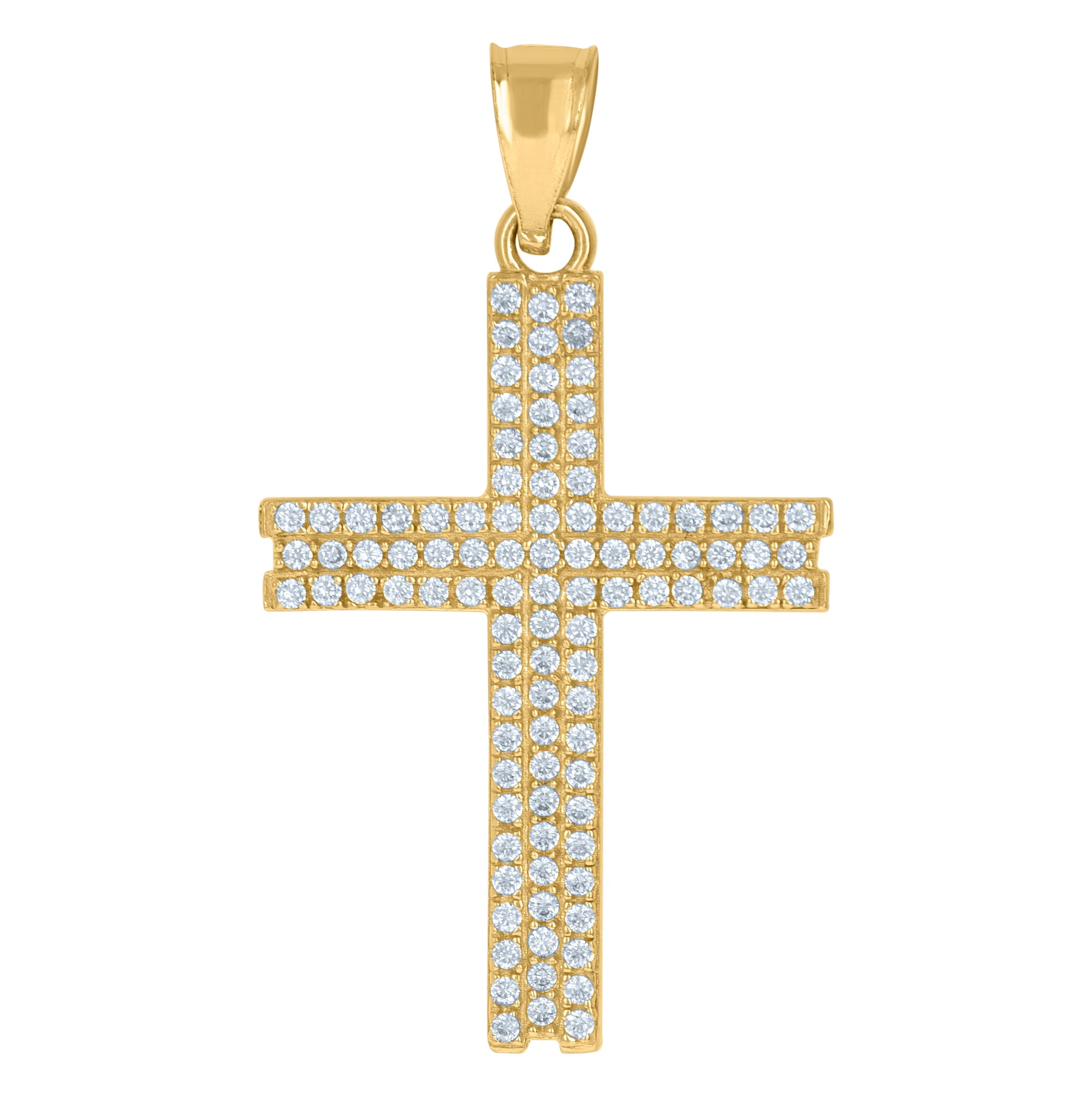 10K Yellow Gold Mens Cubic Zirconia Cross Religious Charm Pendant