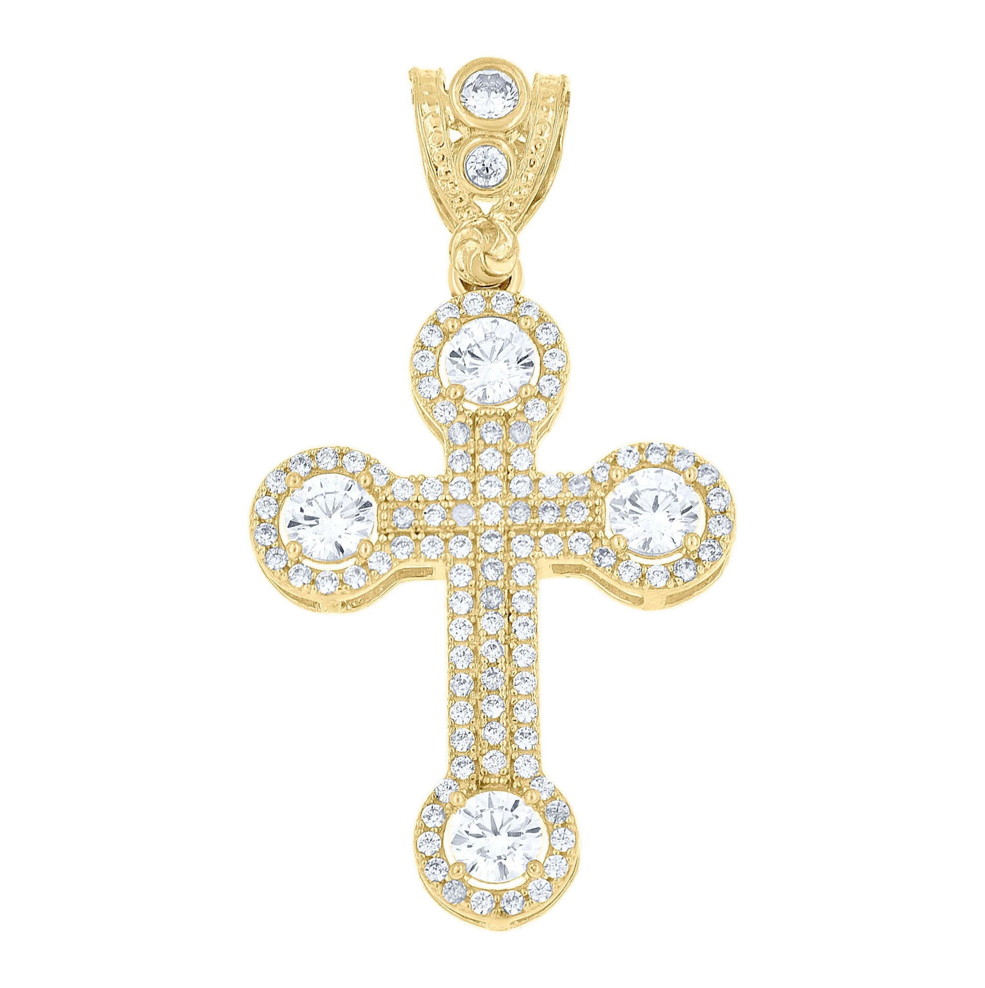 10K Yellow Gold Mens Cubic Zirconia Cross Religious Charm Pendant