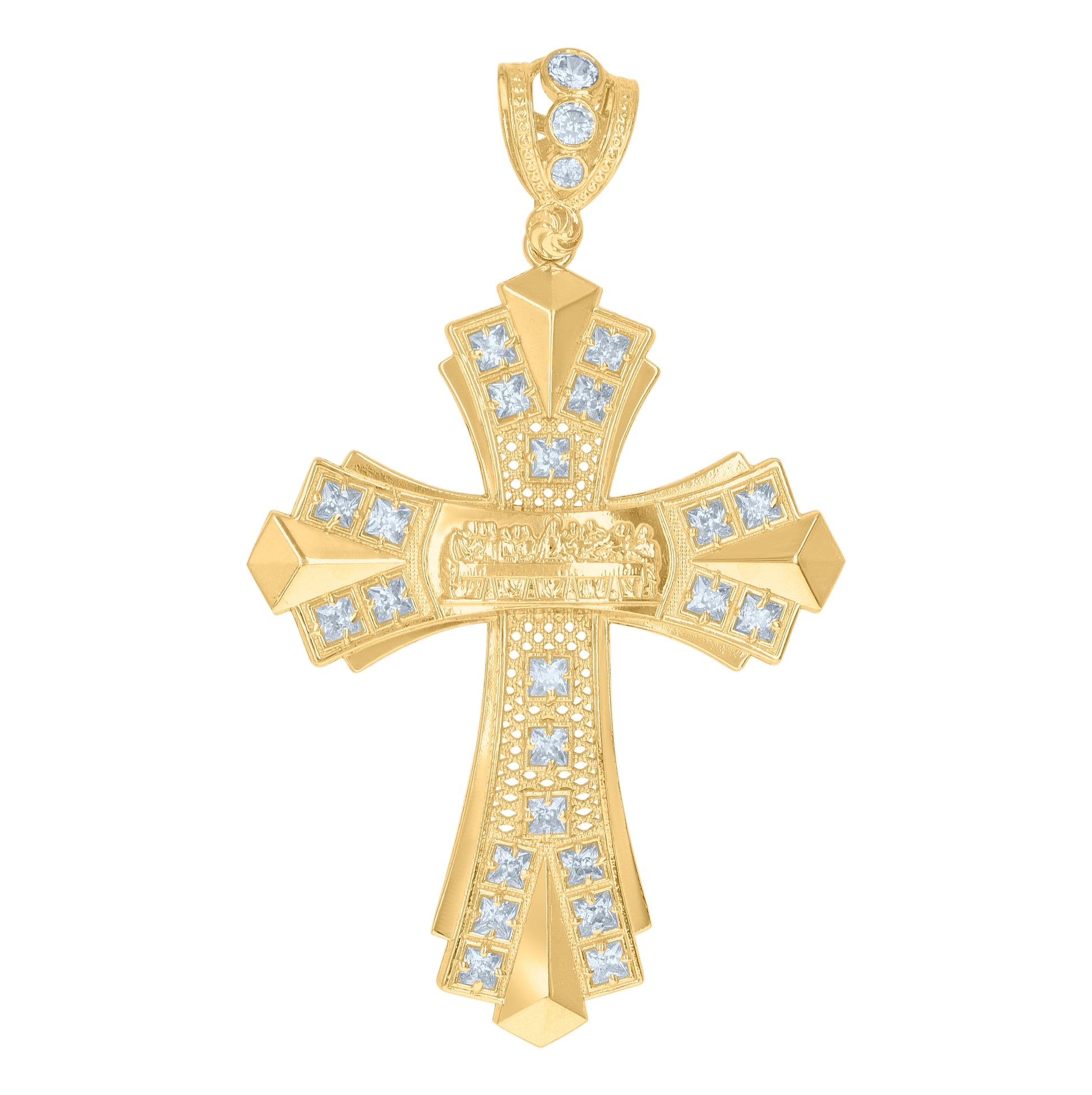 10K Yellow Gold Mens Cubic-Zirconia Cross Religious Charm Pendant