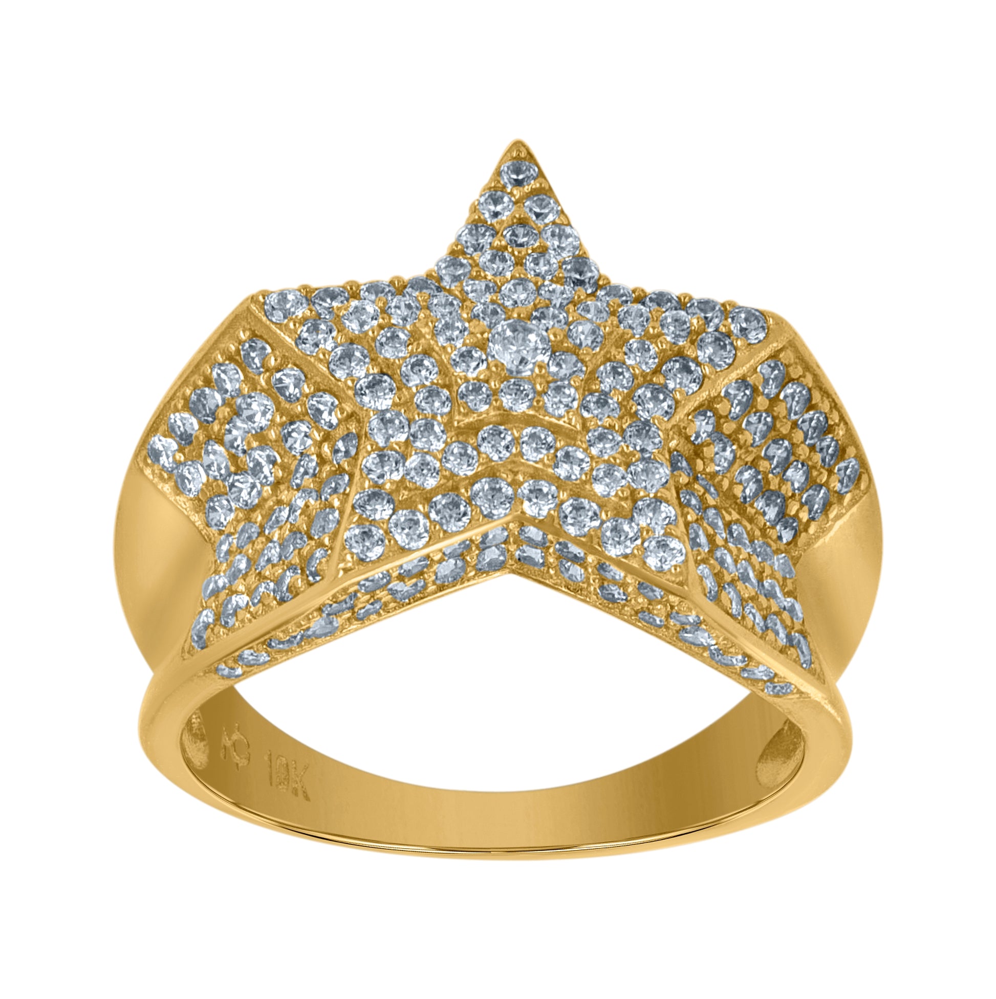 10K Yellow Gold Mens Cubic Zirconia Star Cluster Nautical Ring