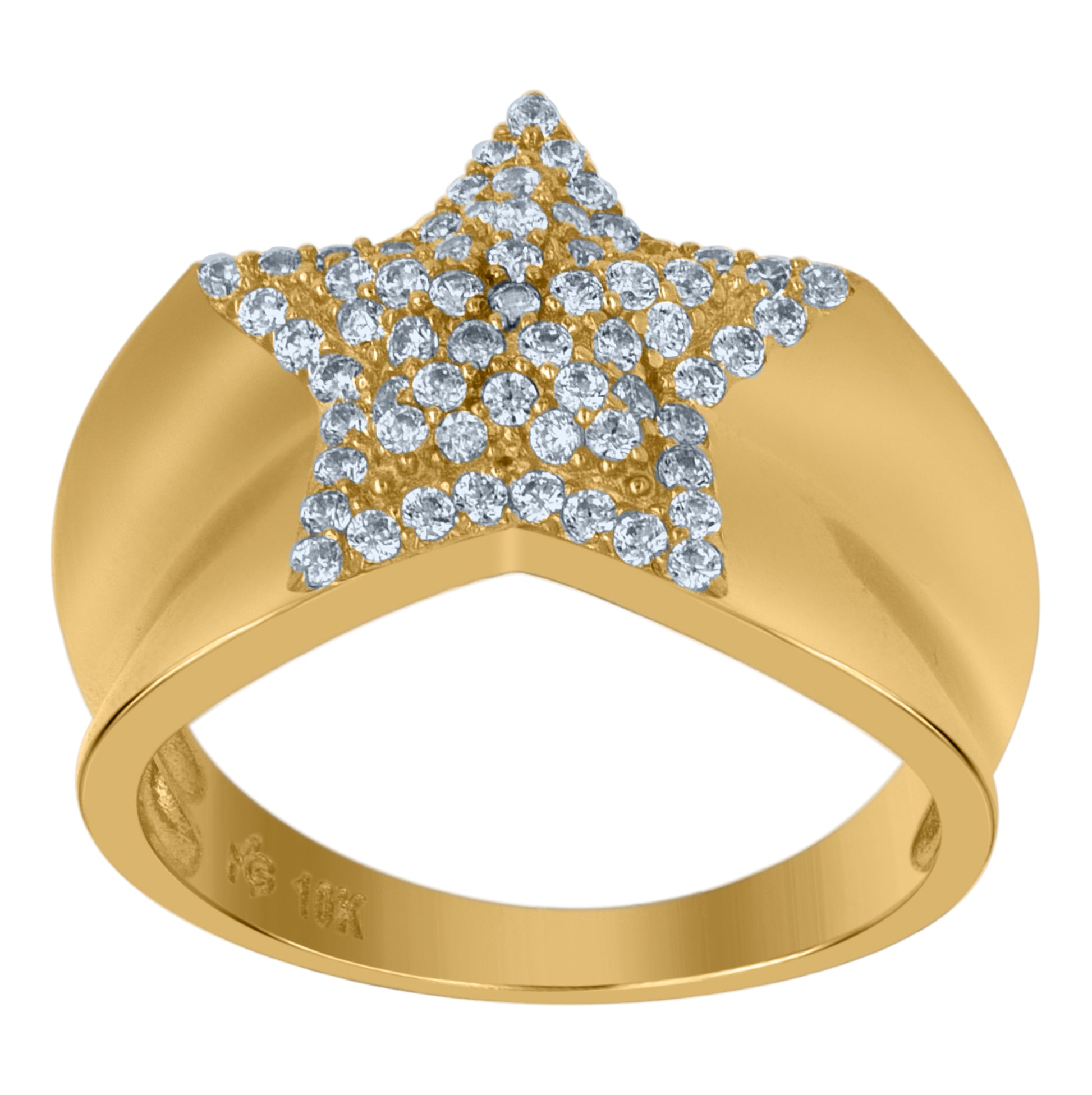 10K Yellow Gold Mens Cubic Zirconia Star Nautical Ring