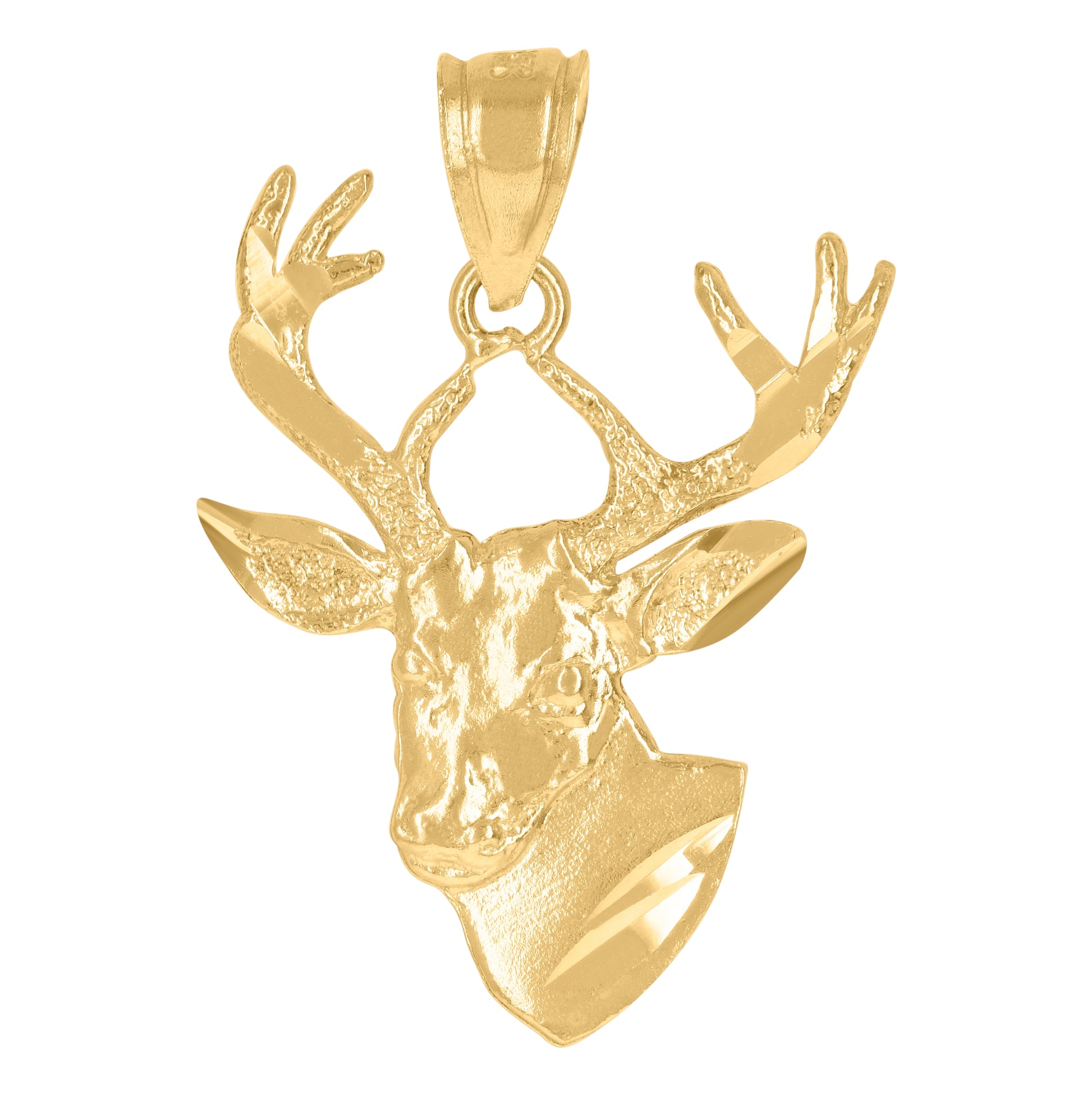 10K Yellow Gold Mens Diamond-Cut Deer Head Animals Charm Pendant