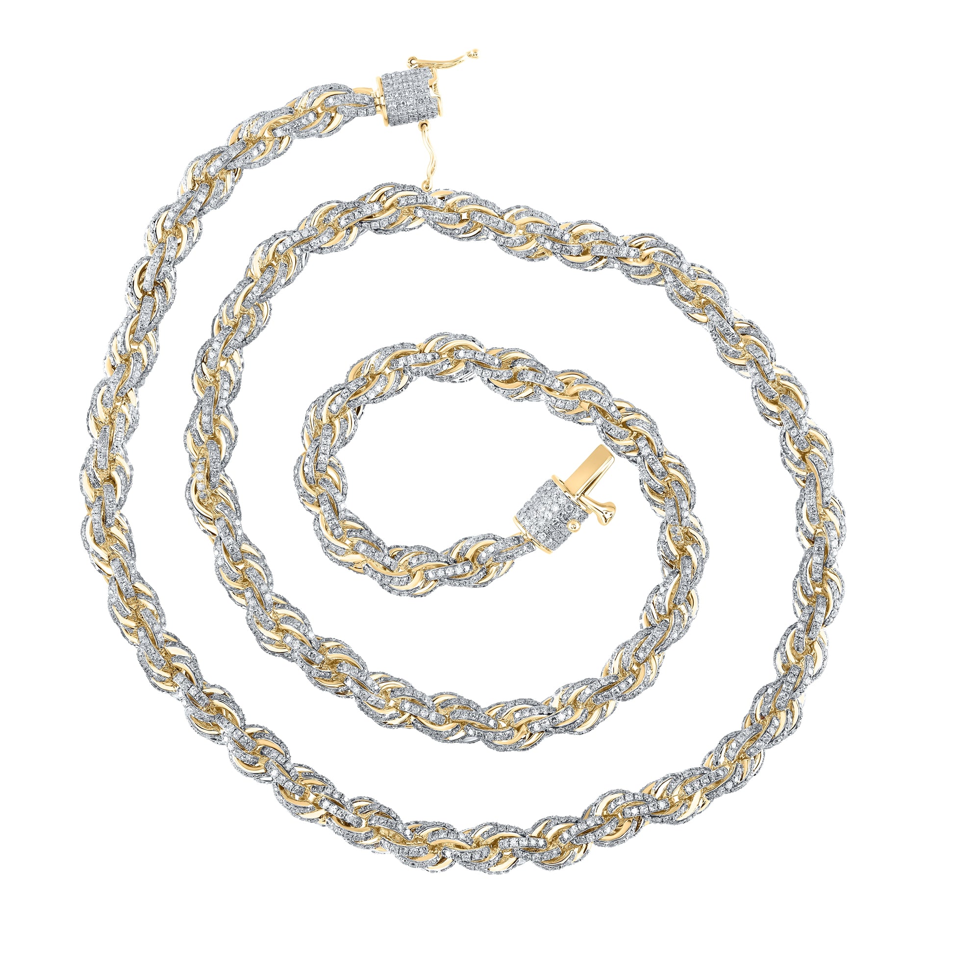 10K Yellow Gold Mens Round Diamond 20-inch Rope Chain Necklace 14-3/4 Cttw, Length: 20 In, Width: 0.24 In
