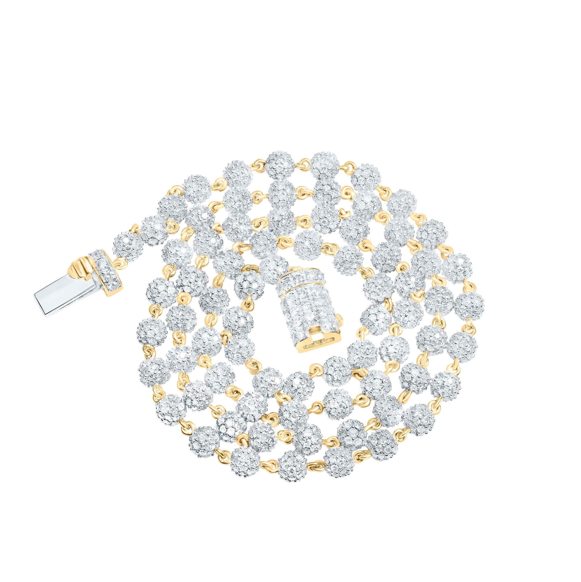10K Yellow Gold Mens Round Diamond Ball 18-inch Ball Link Chain Necklace 11-1/4 Cttw, Width: 0.16 In