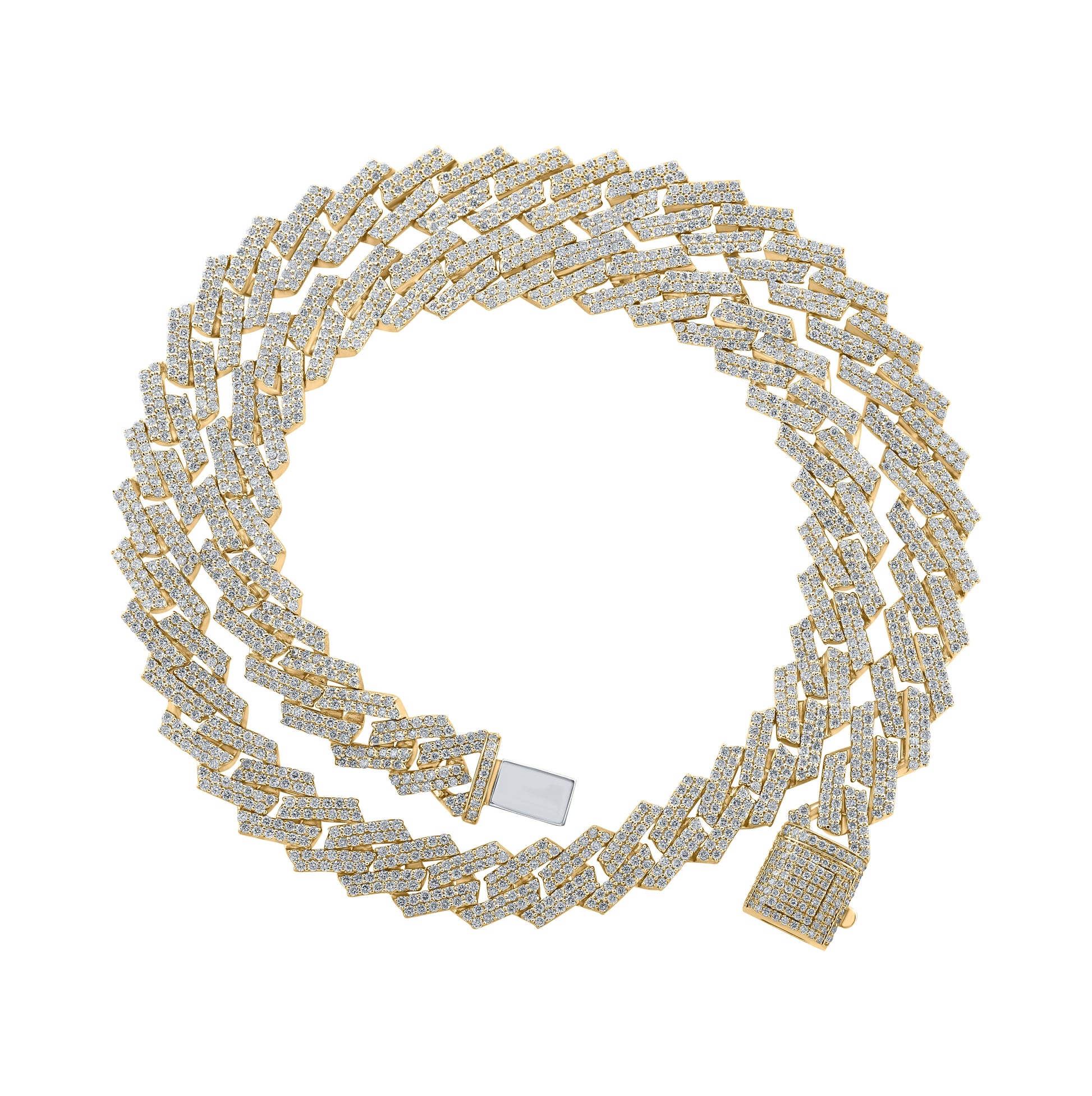 10K Yellow Gold Mens Round Diamond Cuban Curb Link Chain Necklace 21-3/4 Cttw, Length: 22.01 In, Width: 0.54 In