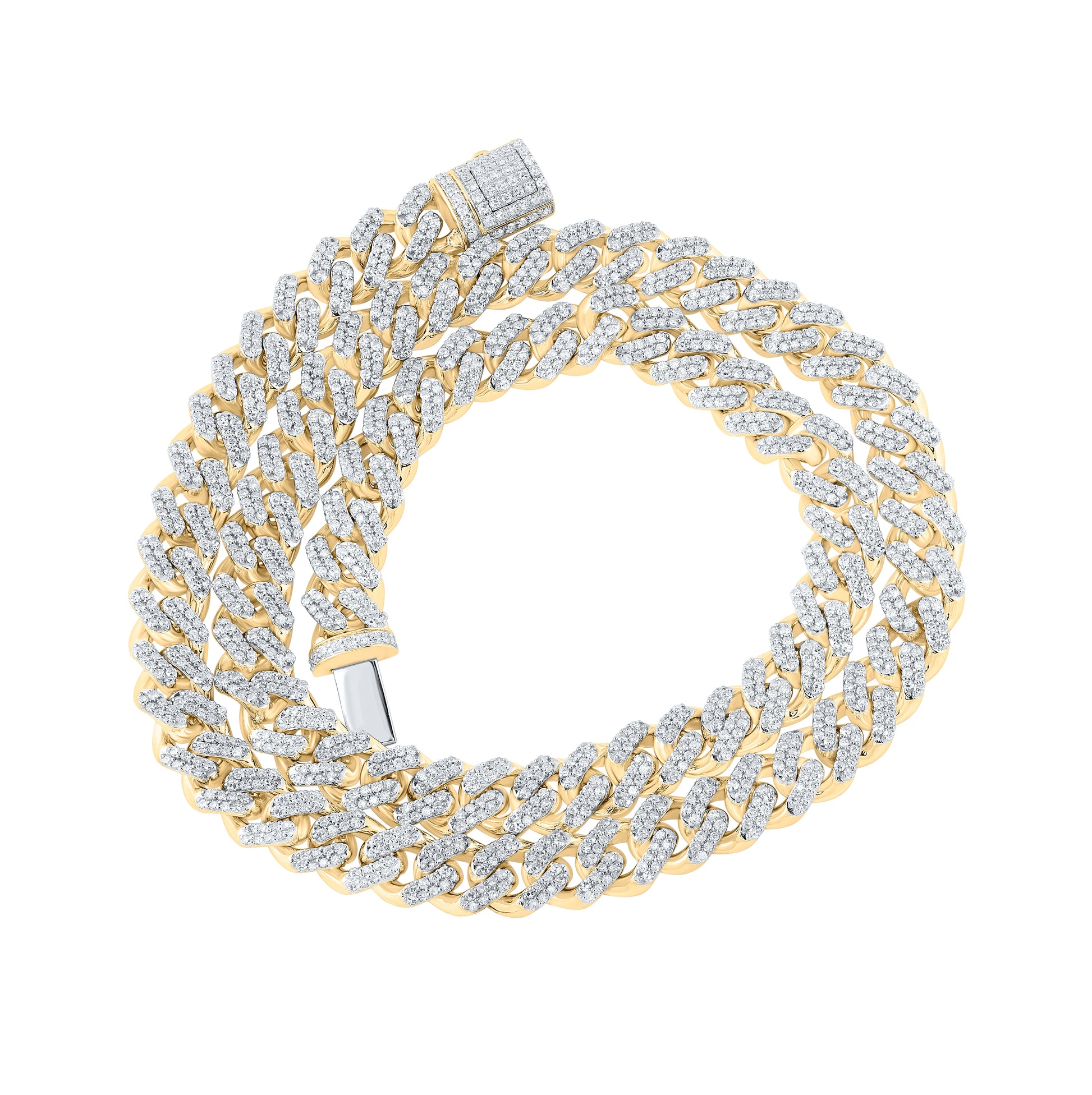 10K Yellow Gold Mens Round Diamond Cuban Link Chain Necklace 12-3/8 Cttw, Length: 22.01 In