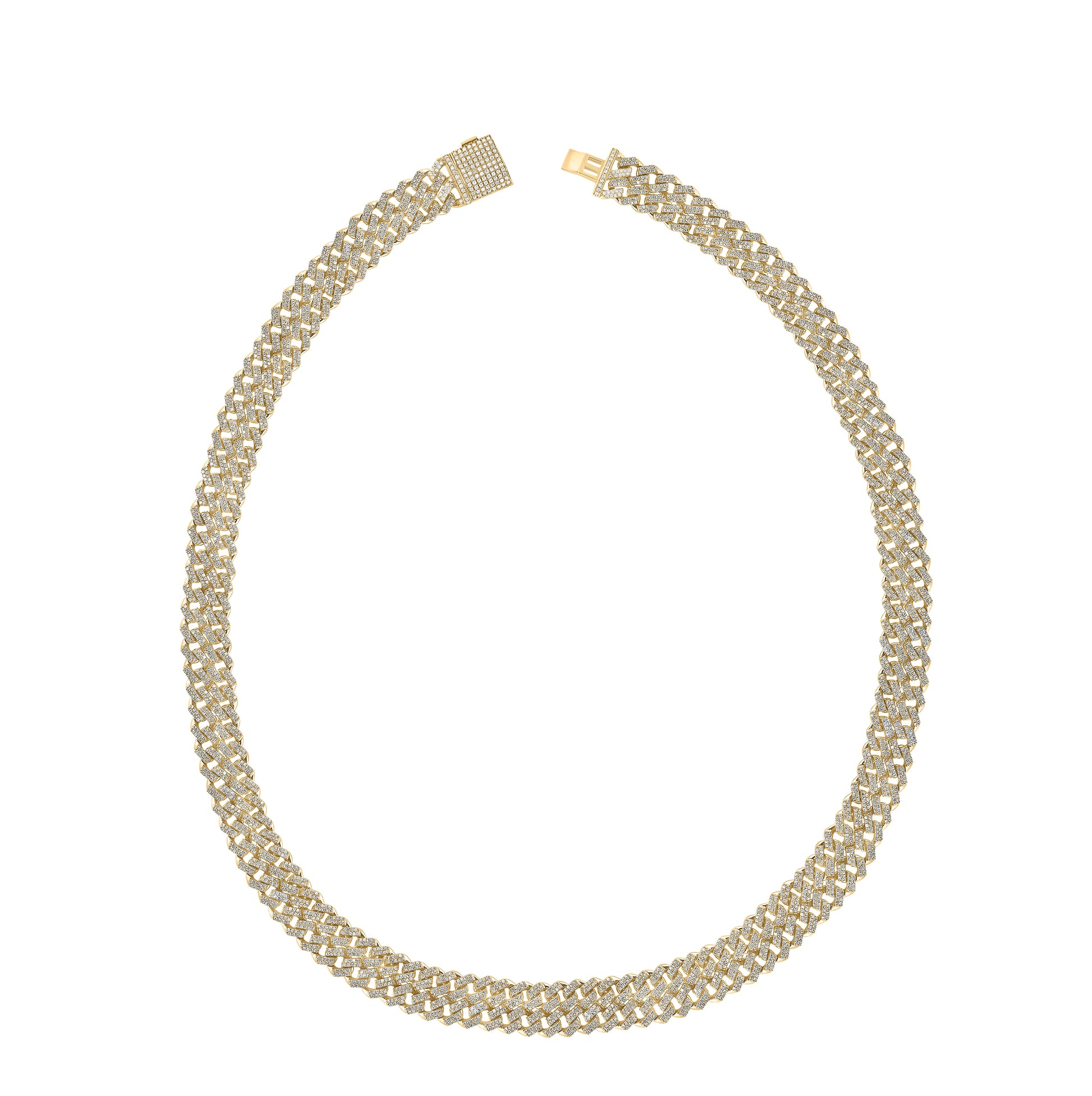 10K Yellow Gold Mens Round Diamond Double Curb 22-inch Link Chain Necklace 12-3/4 Cttw, Length: 22.01 In