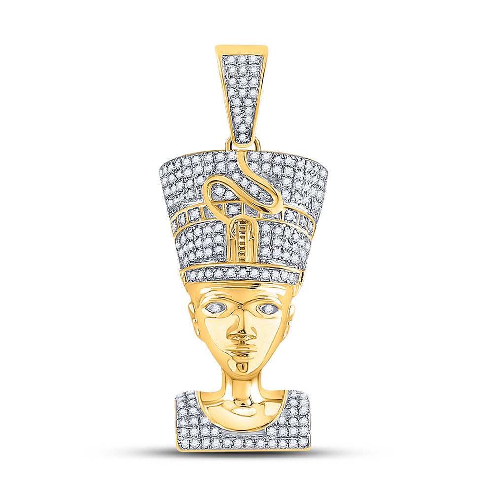 10K Yellow Gold Mens Round Diamond Nefertiti Pharaoh Charm Pendant 5/8 Cttw, Length: 2.37 In, Width: 0.98 In