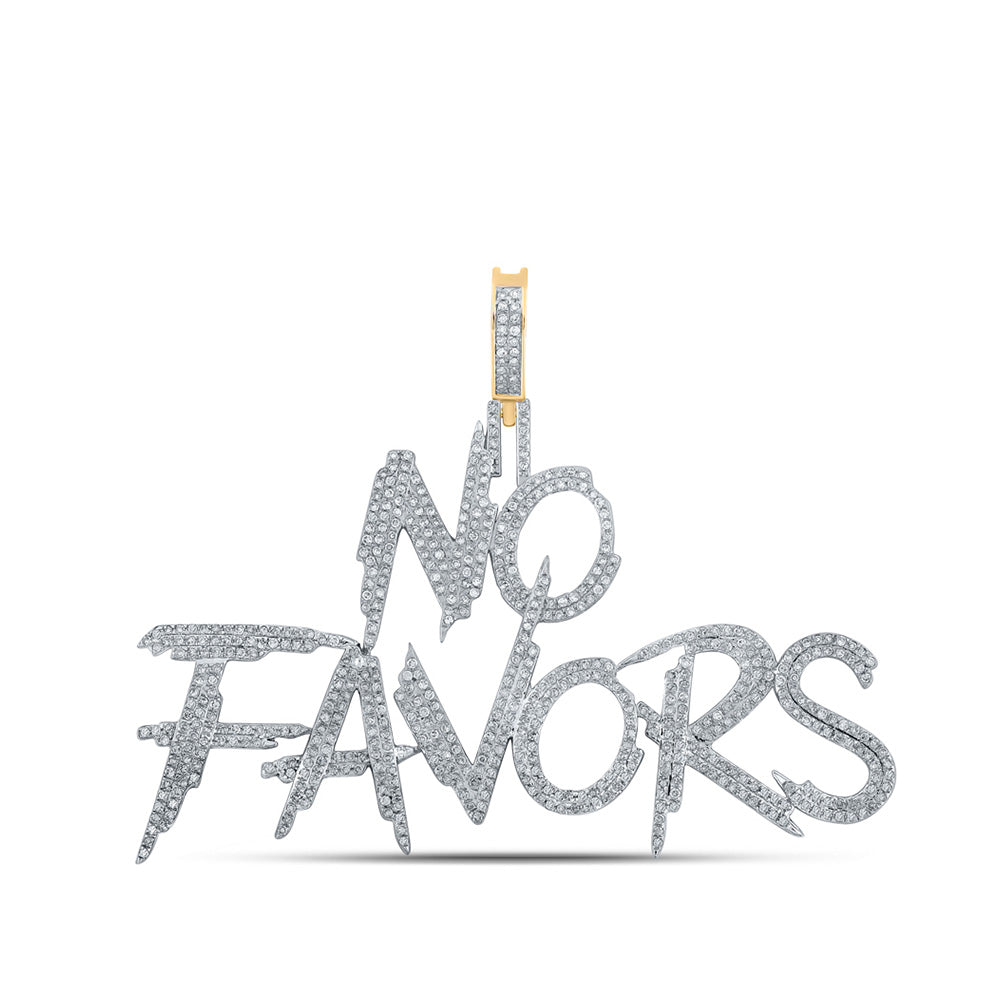 10K Yellow Gold Mens Round Diamond No Favors Phrase Charm Pendant 1-1/2 Cttw