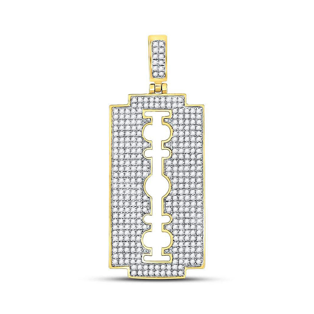 10K Yellow Gold Mens Round Diamond Razor Blade Charm Pendant 1 Cttw