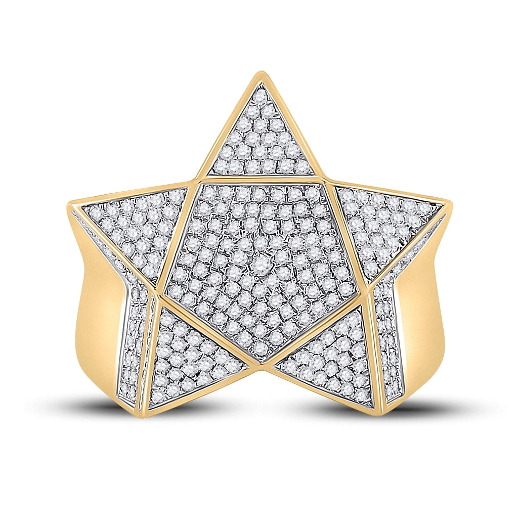 10K Yellow Gold Mens Round Diamond Star Statement Ring 1 Cttw, Mens Size: 7-13