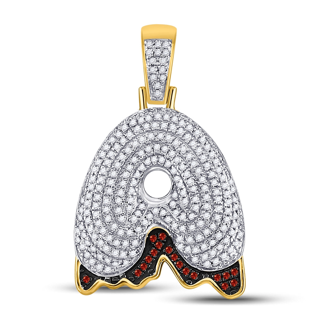 10K Yellow Gold Mens Round Red Color Enhanced Diamond Letter Blood Charm Pendant