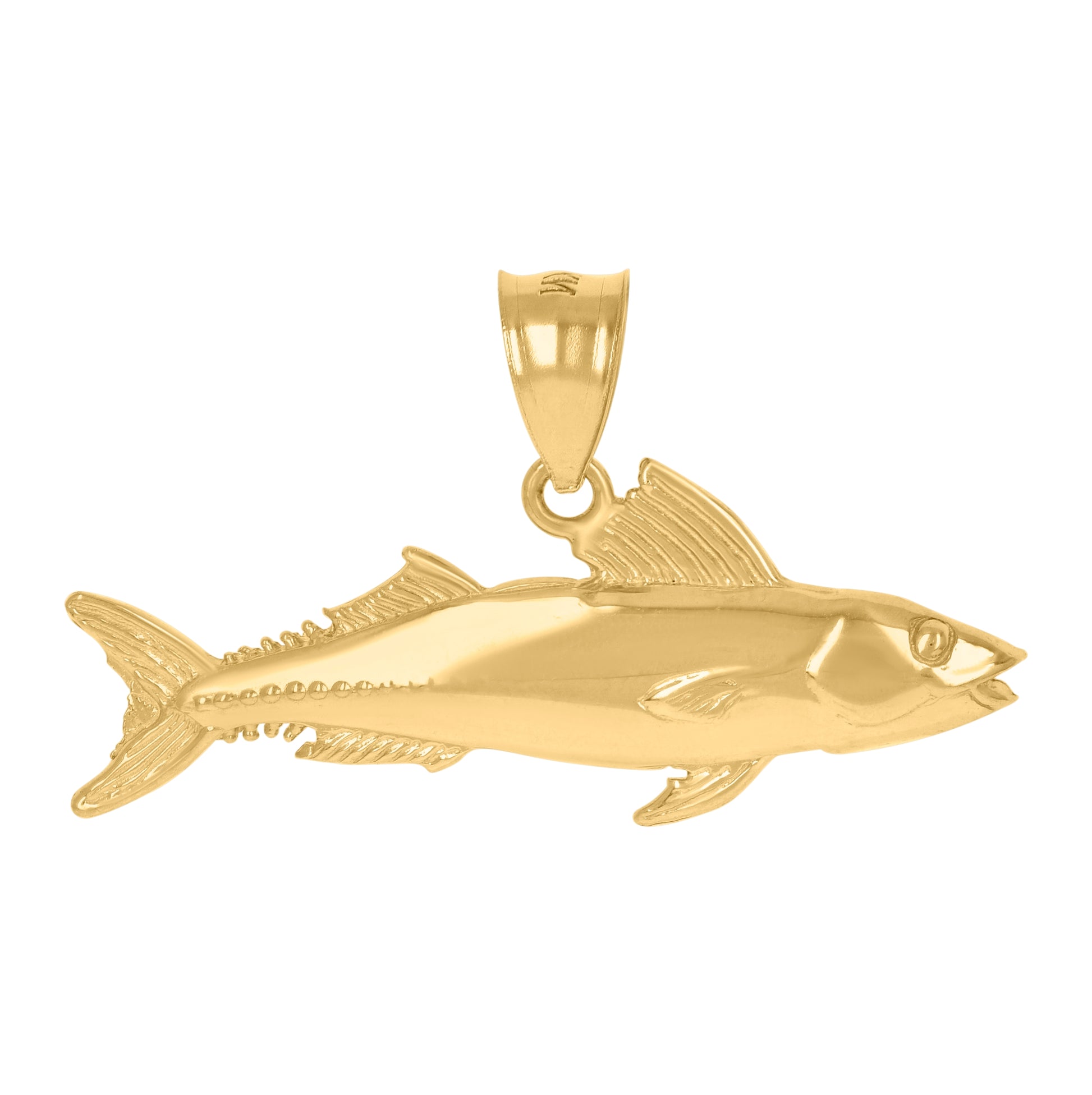 10K Yellow Gold Mens Sea Salmon Fish Animal Charm Pendant