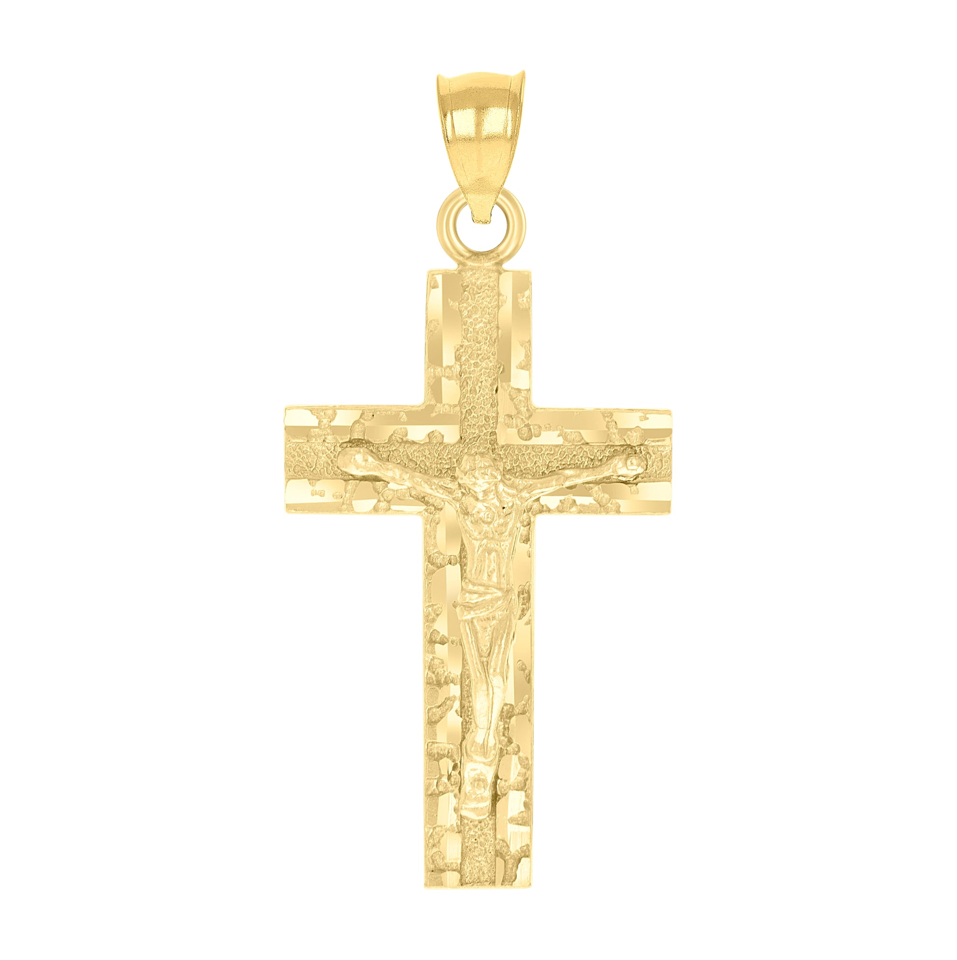 10K Yellow Gold Mens Textured Nugget Crucifix Cross Religious Charm Pendant