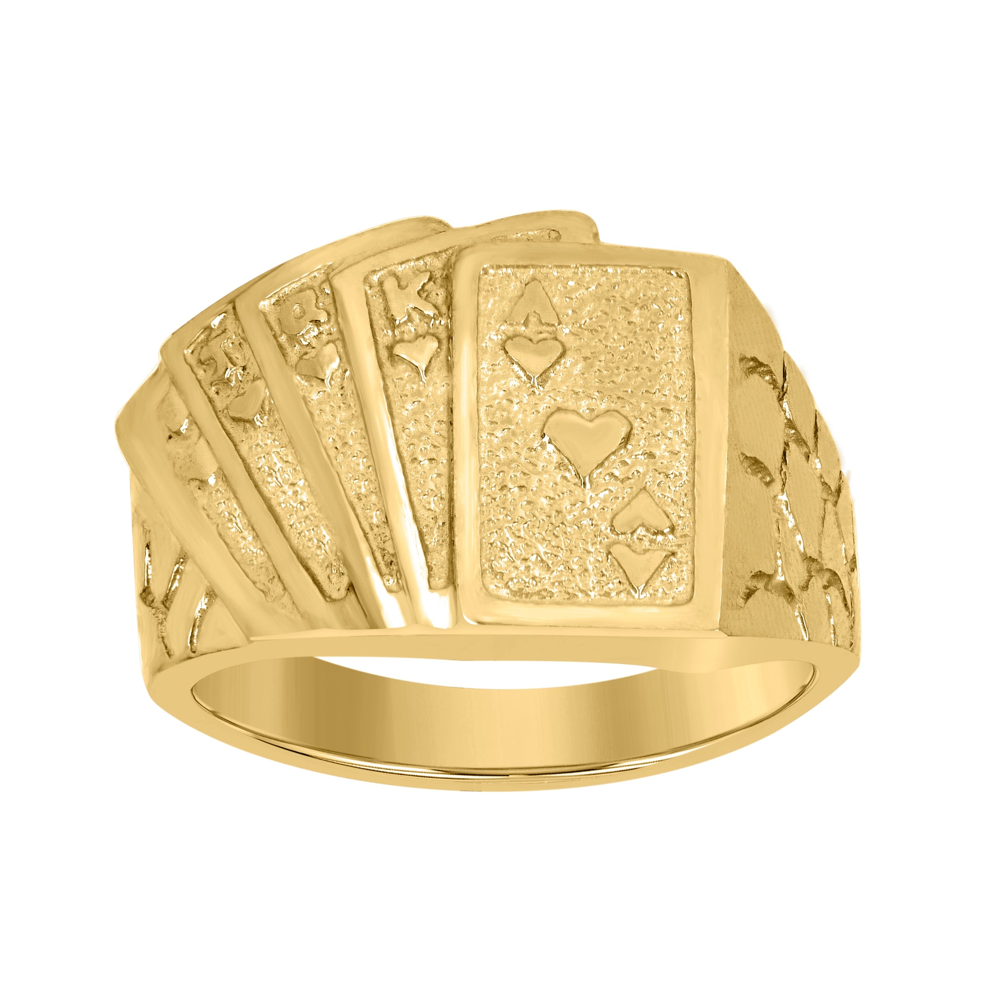 10K Yellow Gold Mens Textured Playing Cards Band Ring