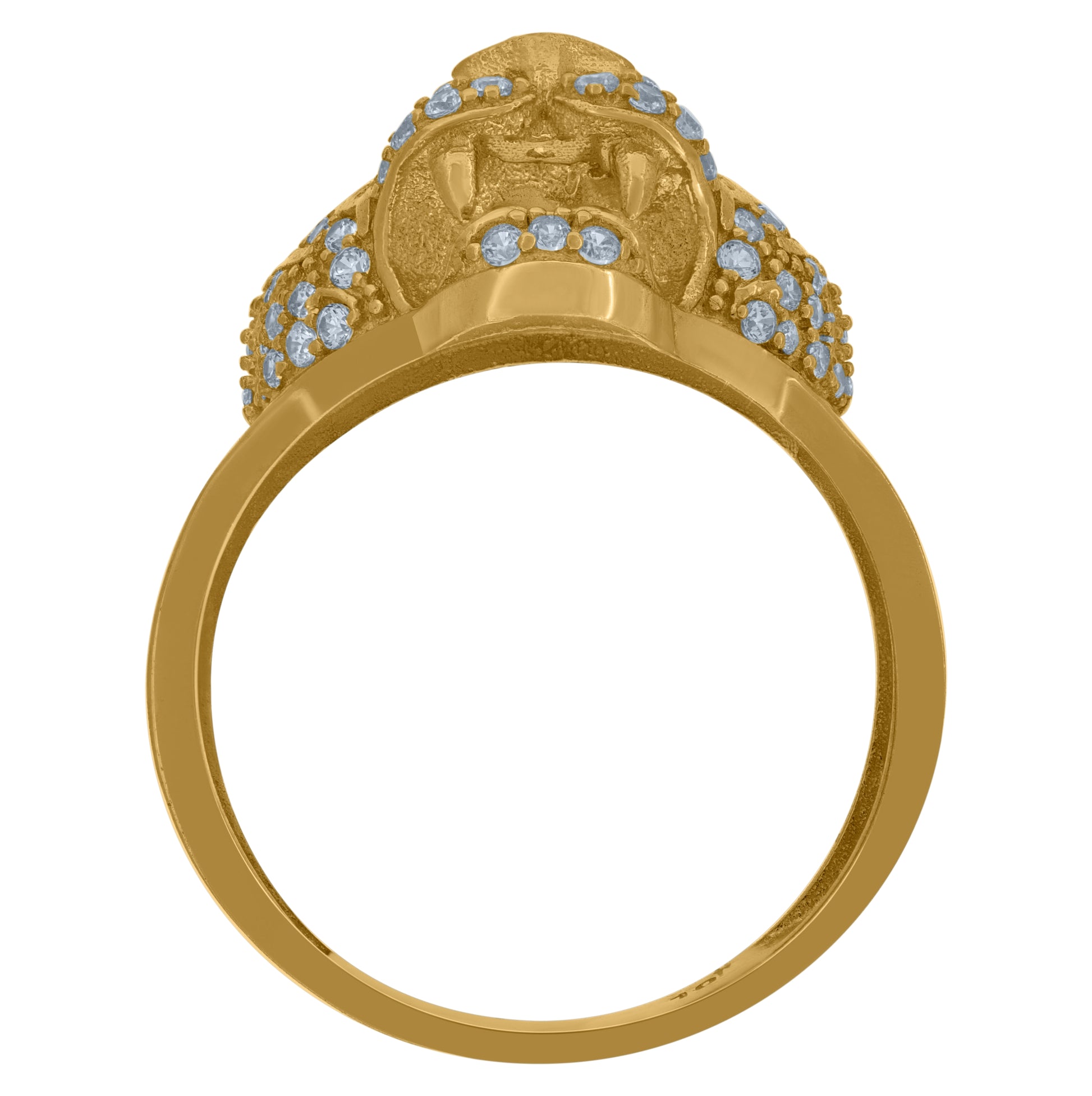 10K Yellow Gold Mens White Pink Cubic Zirconia Tiger Animal Head Ring