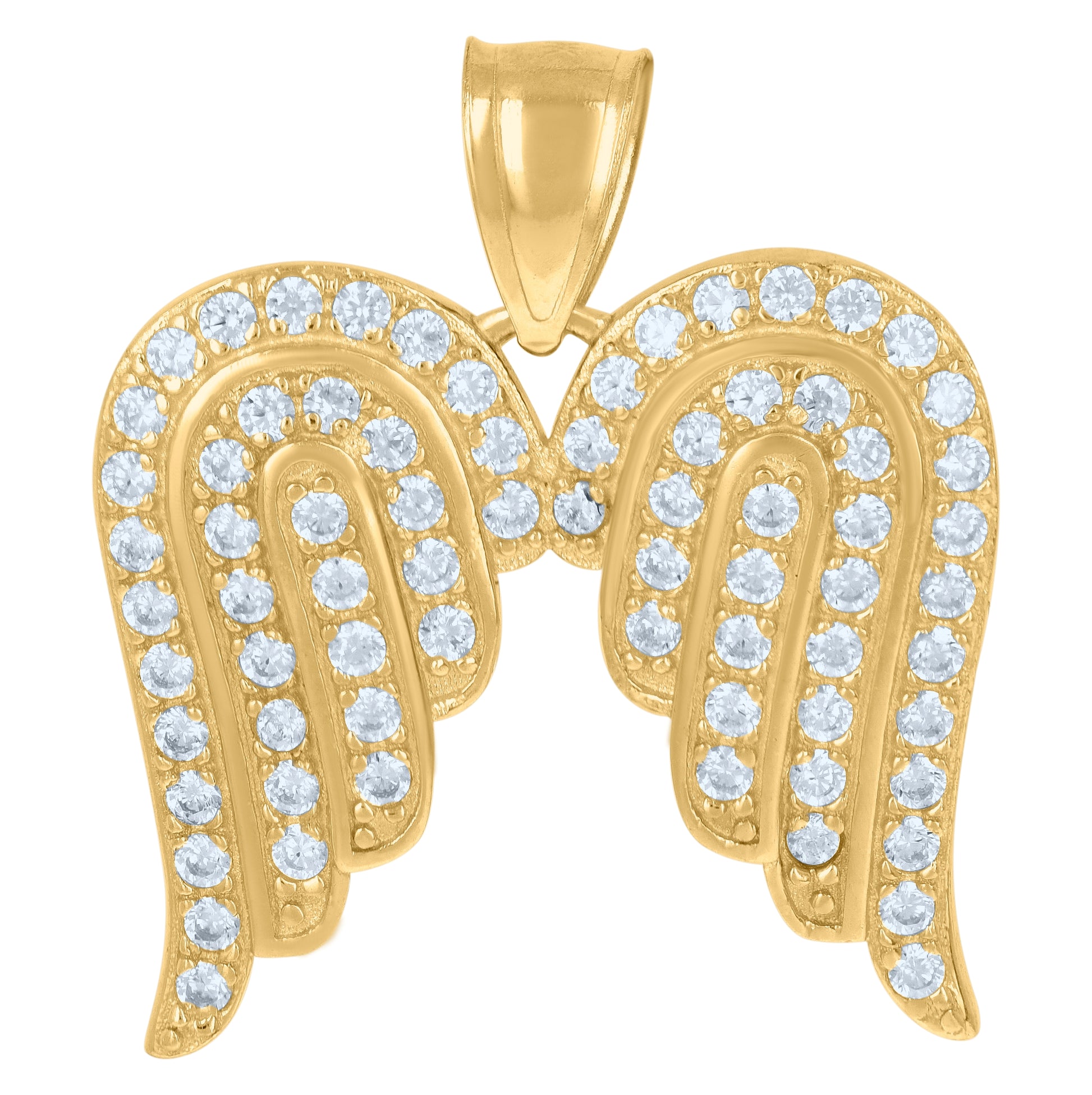 10K Yellow Gold Mens Women Cubic Zirconia Angel Wings Religious Charm Pendant