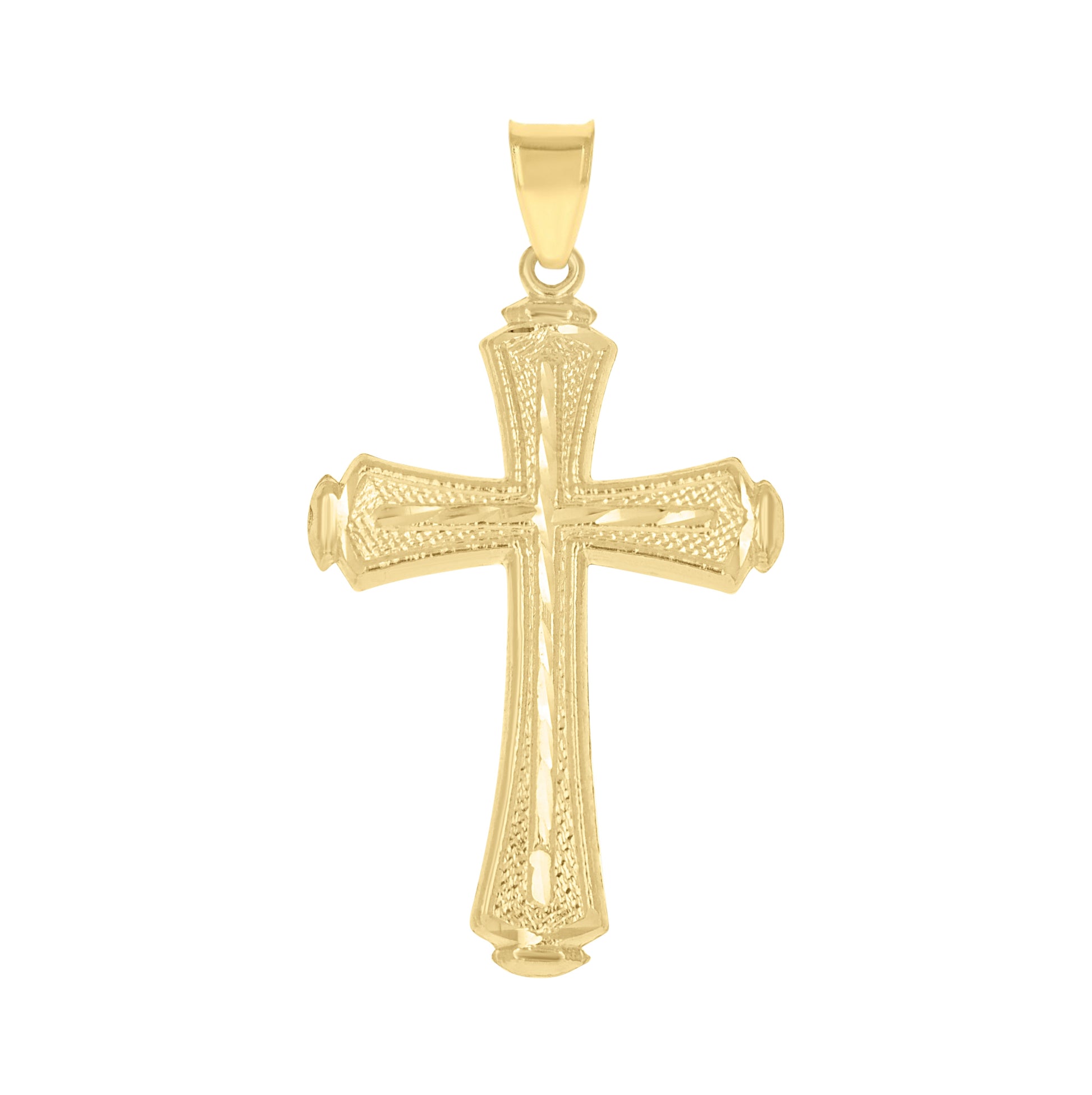 10K Yellow Gold Mens Women Diamond-Cut Cross Religious Charm Pendant