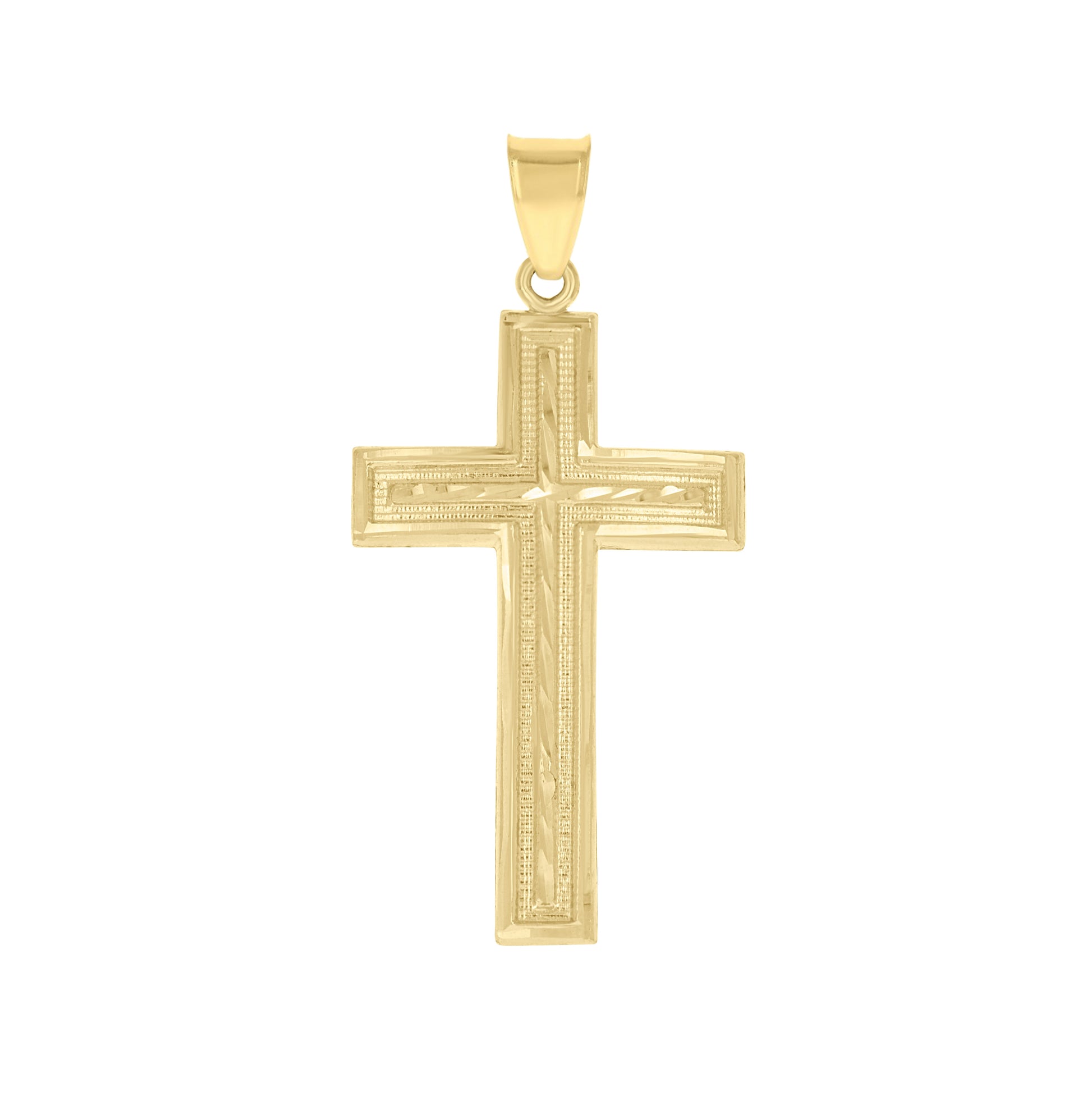 10K Yellow Gold Mens Women Diamond-Cut Cross Religious Charm Pendant