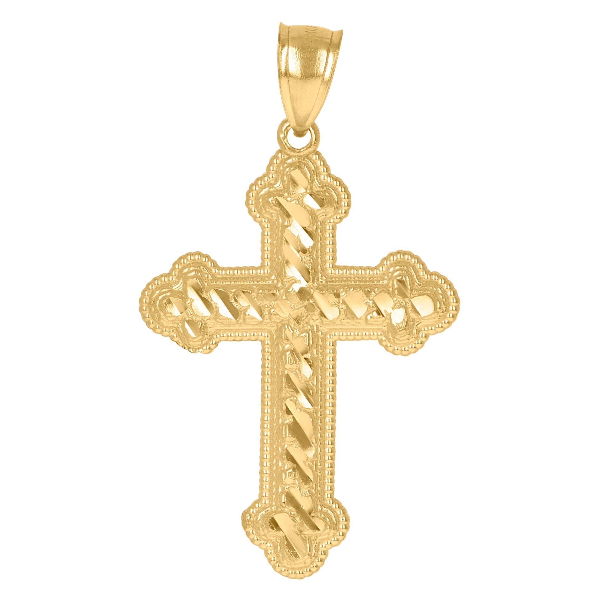 10K Yellow Gold Mens Women Nugget Textured Cross Religious Charm Pendant