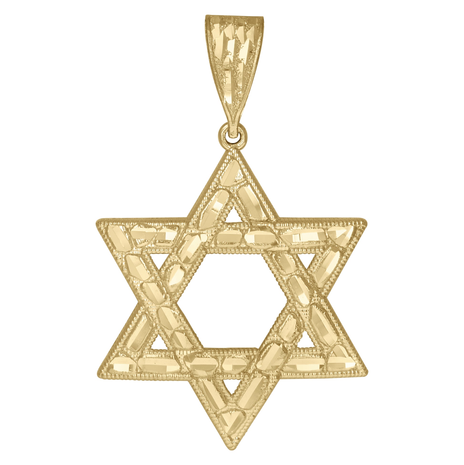 10K Yellow Gold Mens Women Nugget Textured Star Of David Religious Charm Pendant