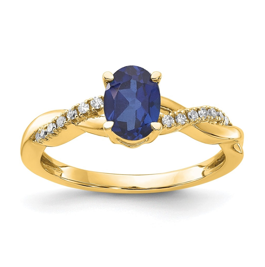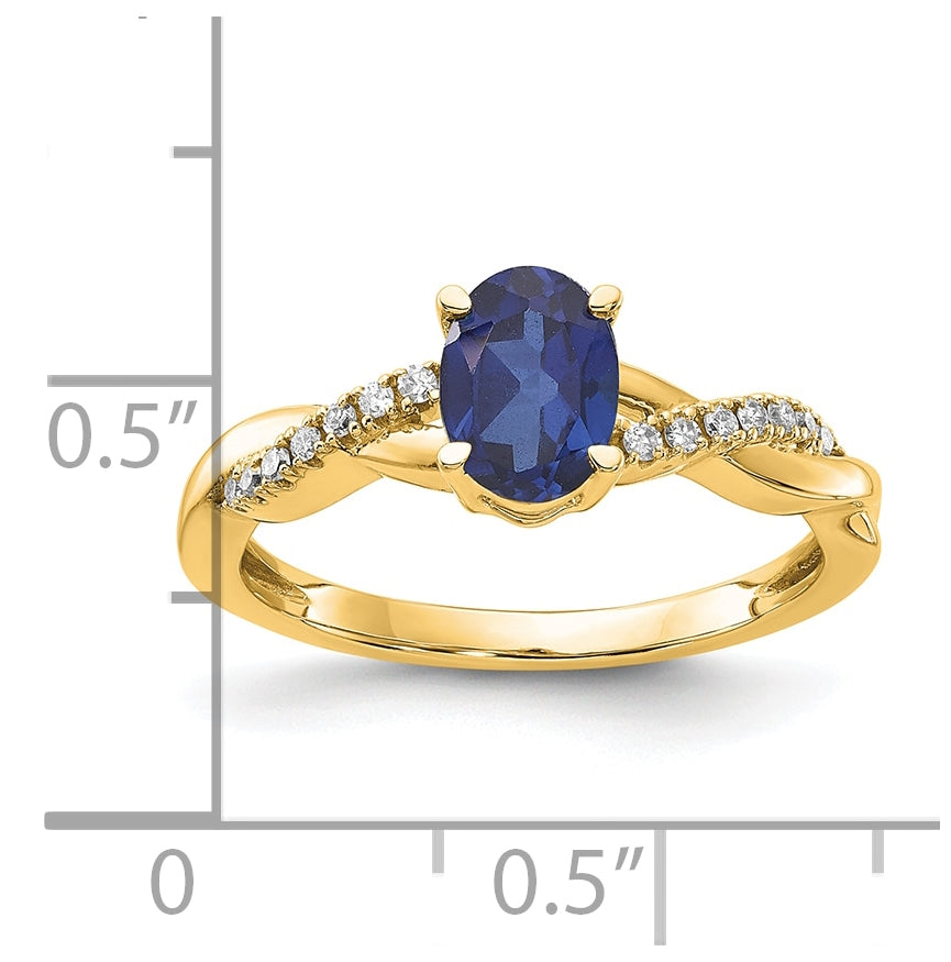 10K Yellow Gold Oval Created Sapphire and Diamond Ring, Size 7