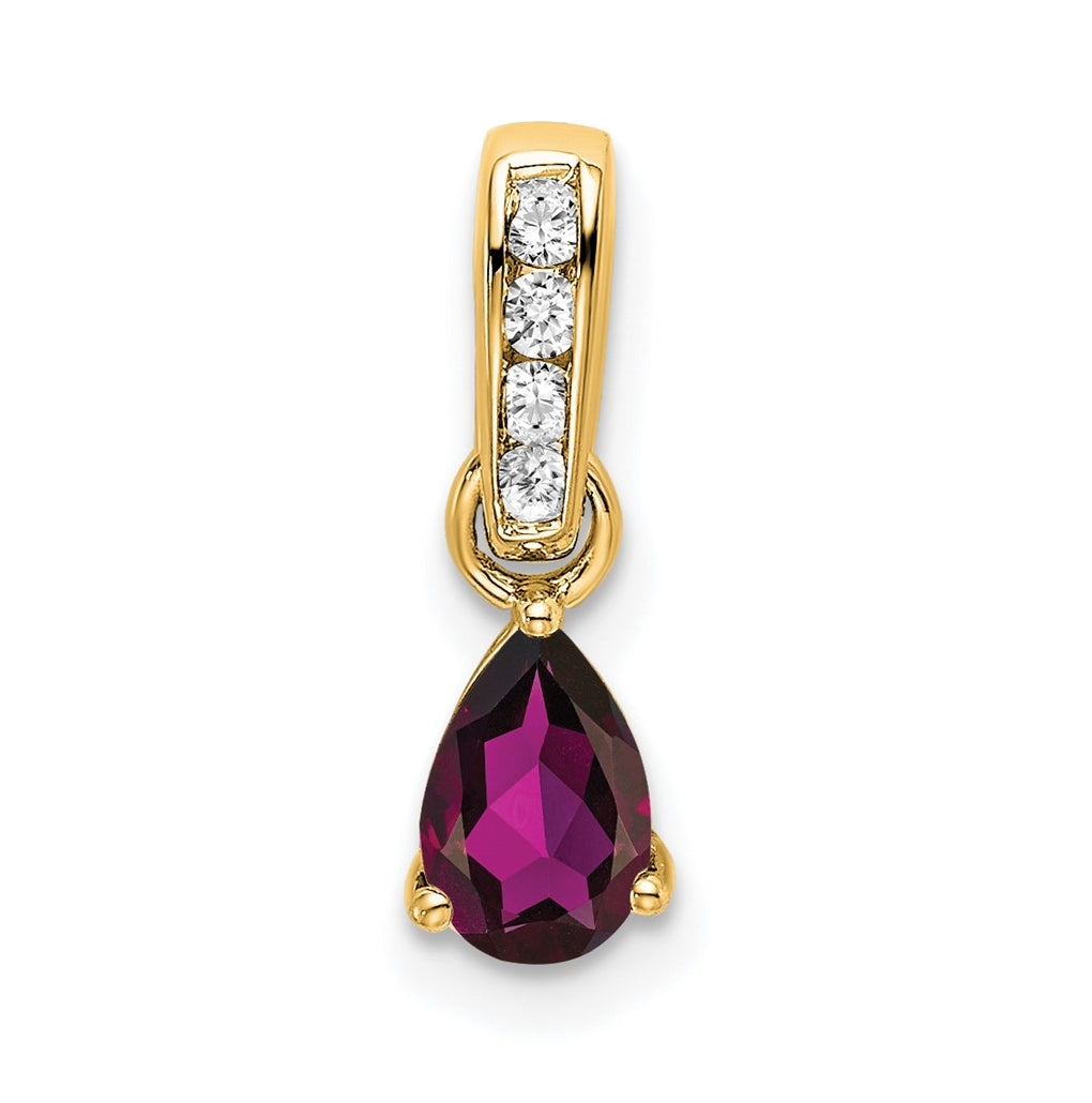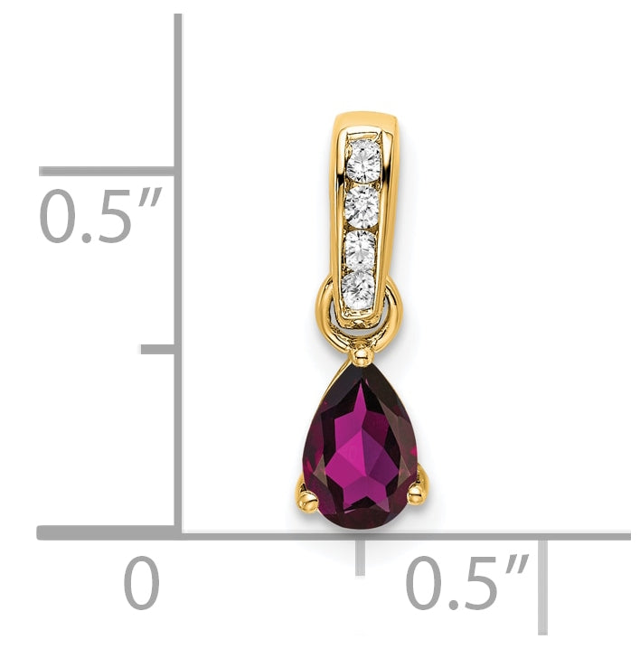 10k Yellow Gold Pear Rhodolite Garnet and Diamond Pendant