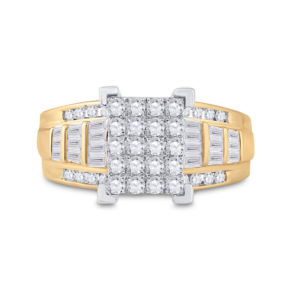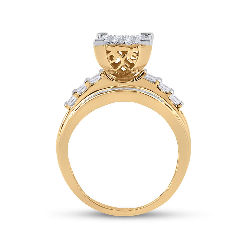 10K Yellow Gold Round Diamond Cluster Bridal Wedding Engagement Ring 1 Cttw, Womens Size: 5-10