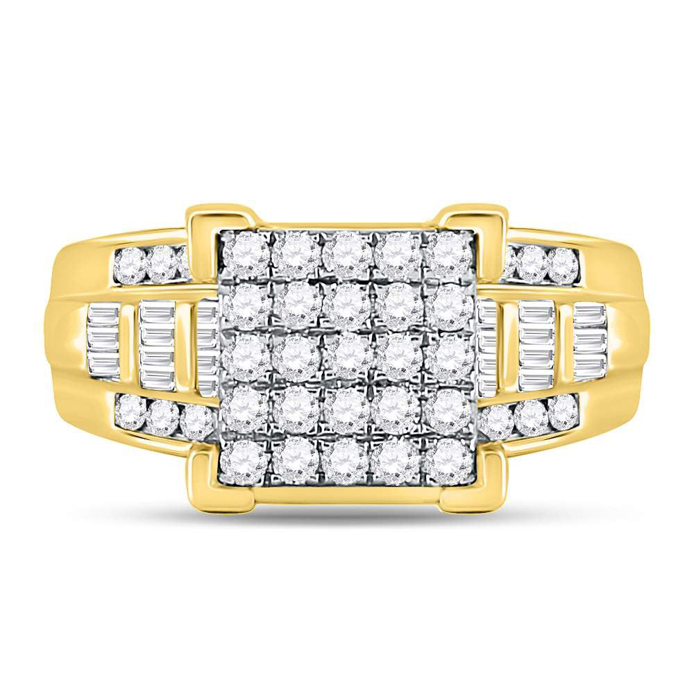 10K Yellow Gold Round Diamond Cluster Bridal Wedding Engagement Ring 1 Cttw, Womens Size: 5-10