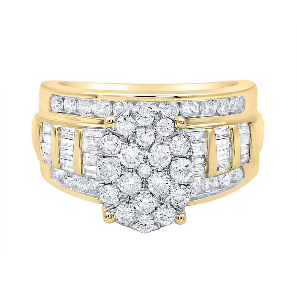 10K Yellow Gold Round Diamond Oval Bridal Wedding Engagement Ring 1-1/2 Cttw, Womens Size: 5-10