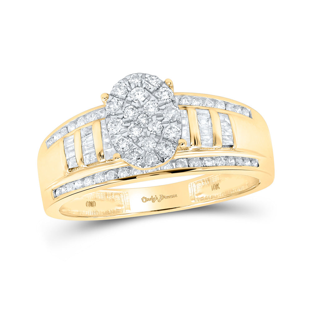 10K Yellow Gold Round Diamond Oval Bridal Wedding Engagement Ring 1/2 Cttw, Womens Size: 5-10