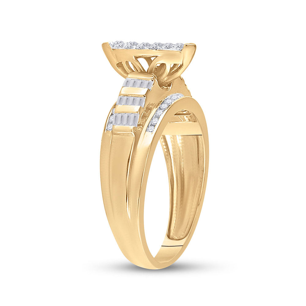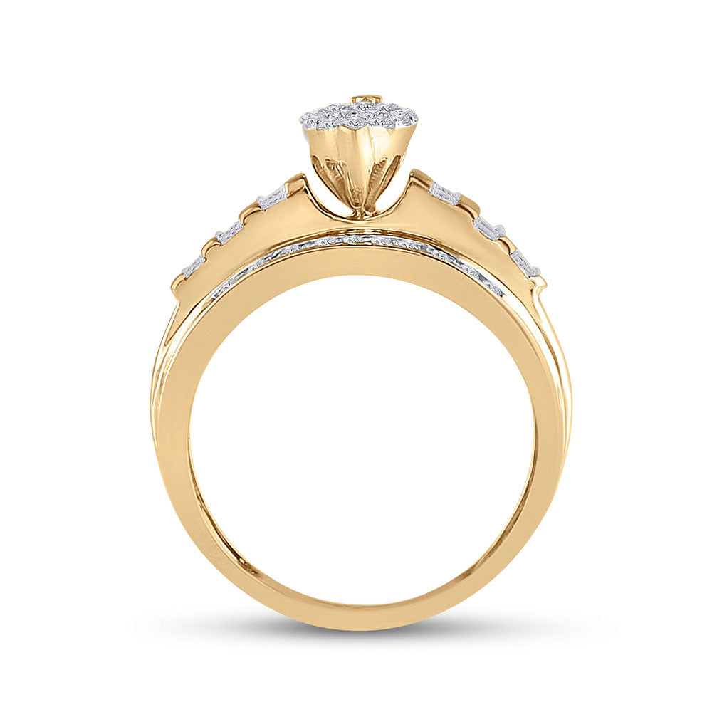 10K Yellow Gold Round Diamond Oval Cluster Bridal Wedding Engagement Ring 1/2 Cttw, Womens Size: 5-10