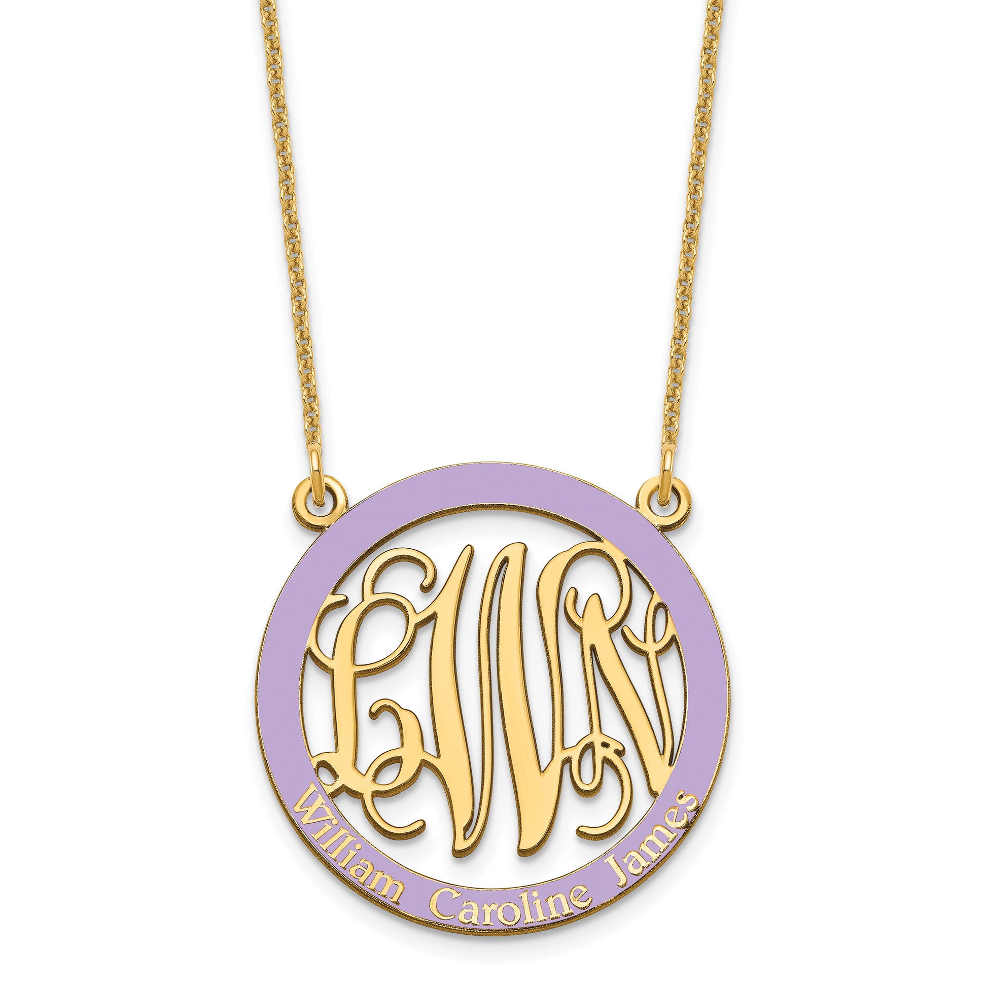 10K Yellow Gold Small Enameled Family Monogram Necklace