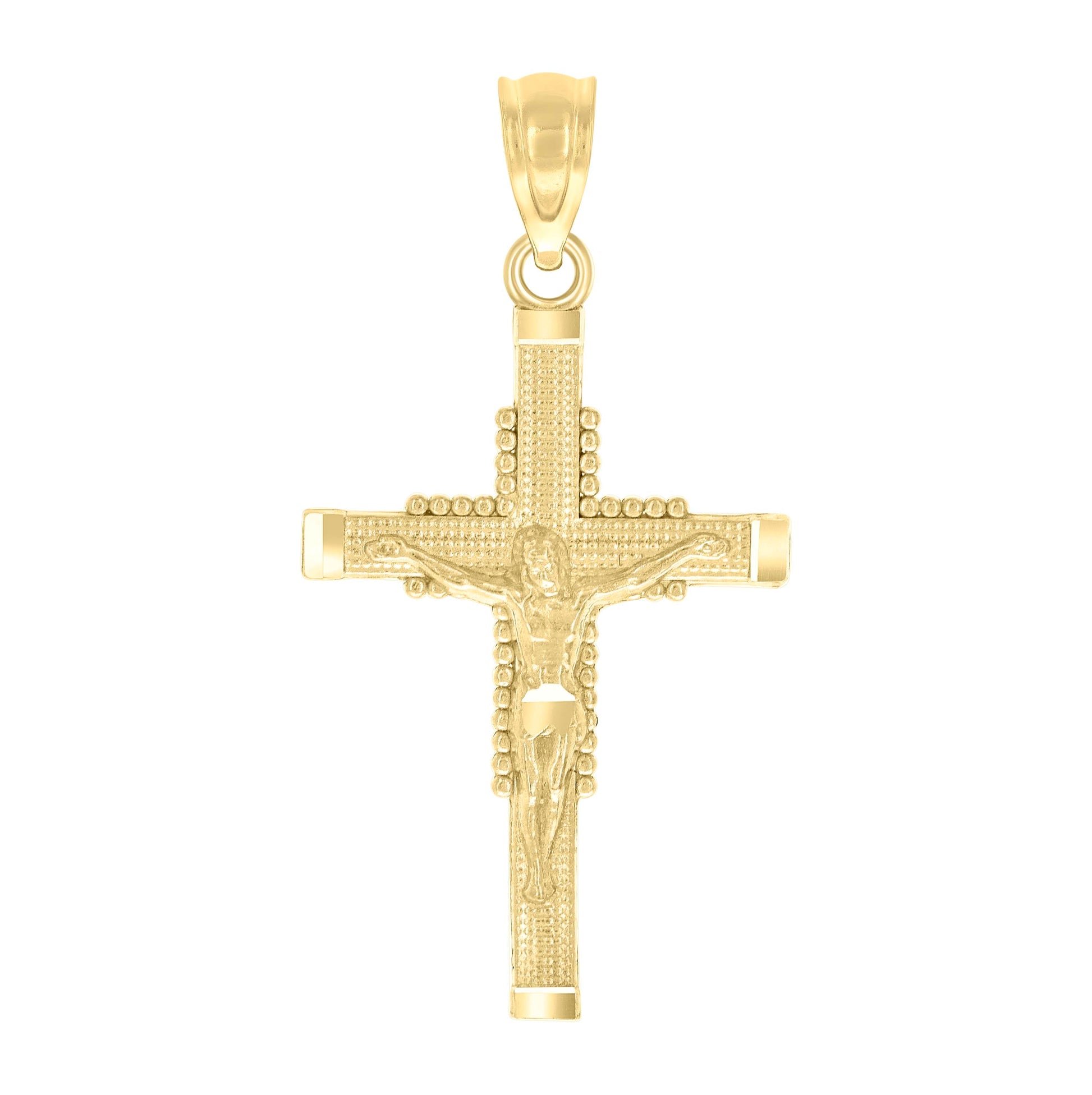 10K Yellow Gold Textured Unisex Cross Crucifix Religious Charm Pendant