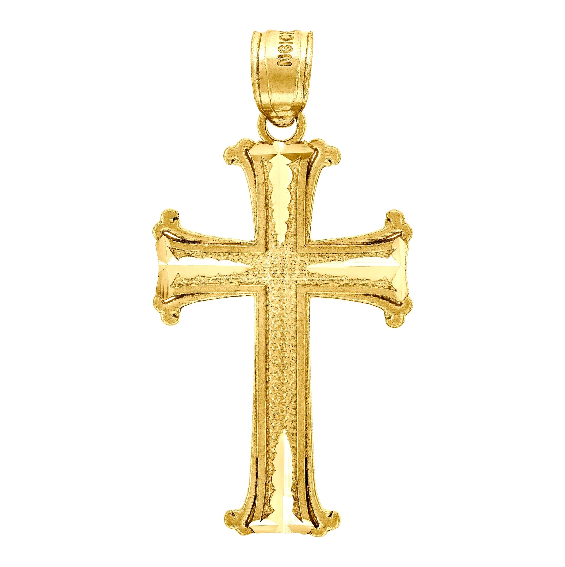 10K Yellow Gold Textured Unisex Cross Religious Charm Pendant