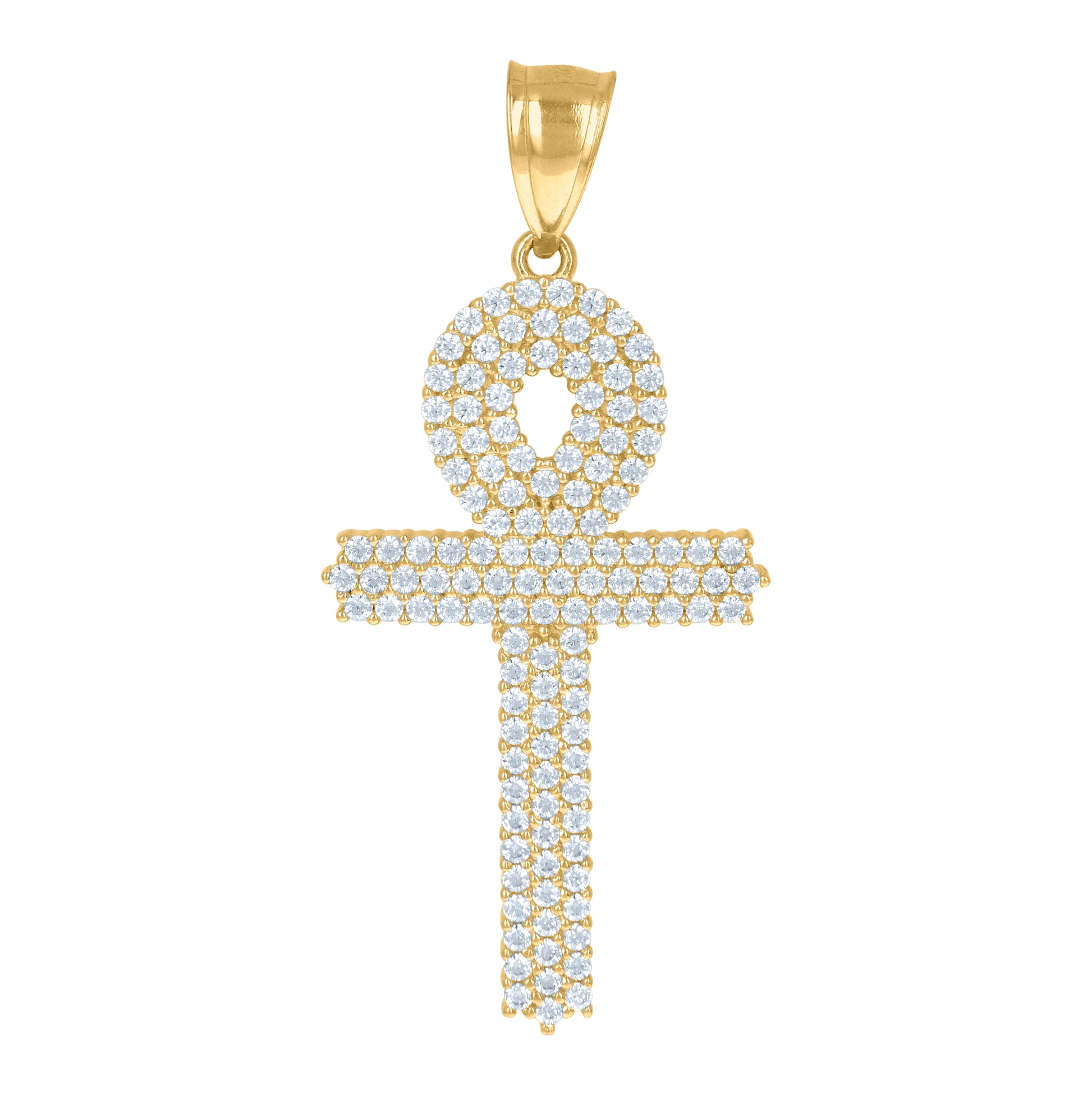 10K Yellow Gold Unisex Cubic Zirconia Cubic-Zirconia Ankh Cross Religious Charm Pendant