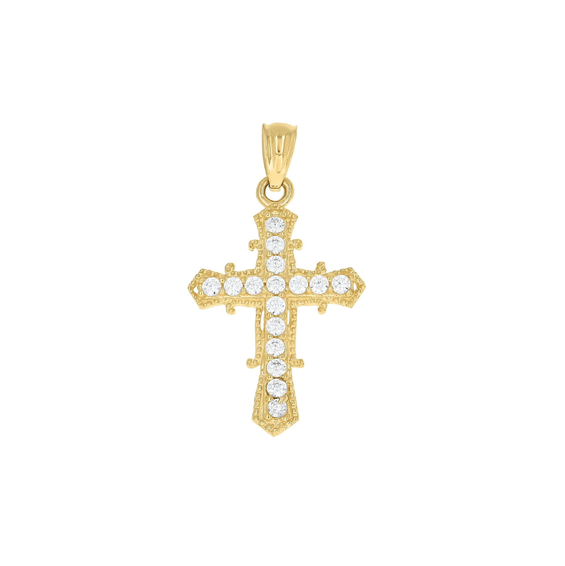 10K Yellow Gold Unisex Cubic Zirconia Cubic-Zirconia Cross Religious Charm Pendant