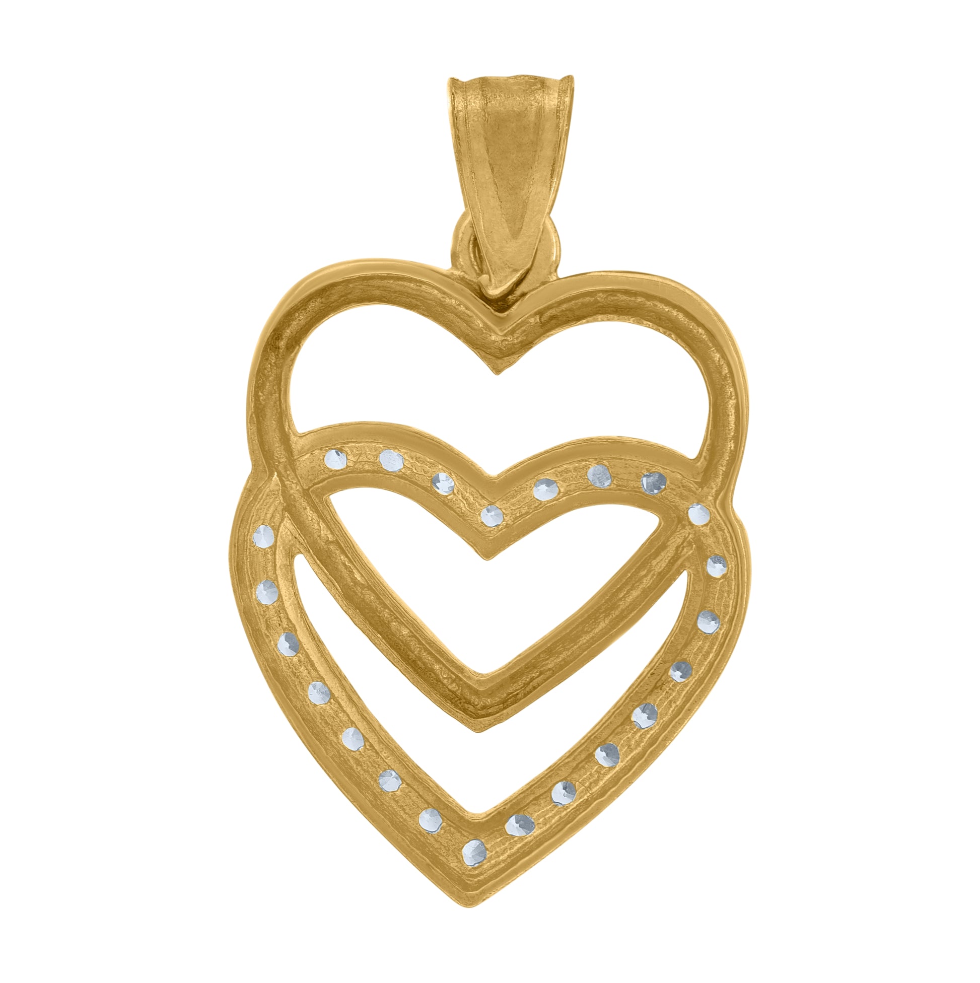 10K Yellow Gold Unisex Cubic Zirconia Cubic-Zirconia Interlocked Hearts Charm Pendant