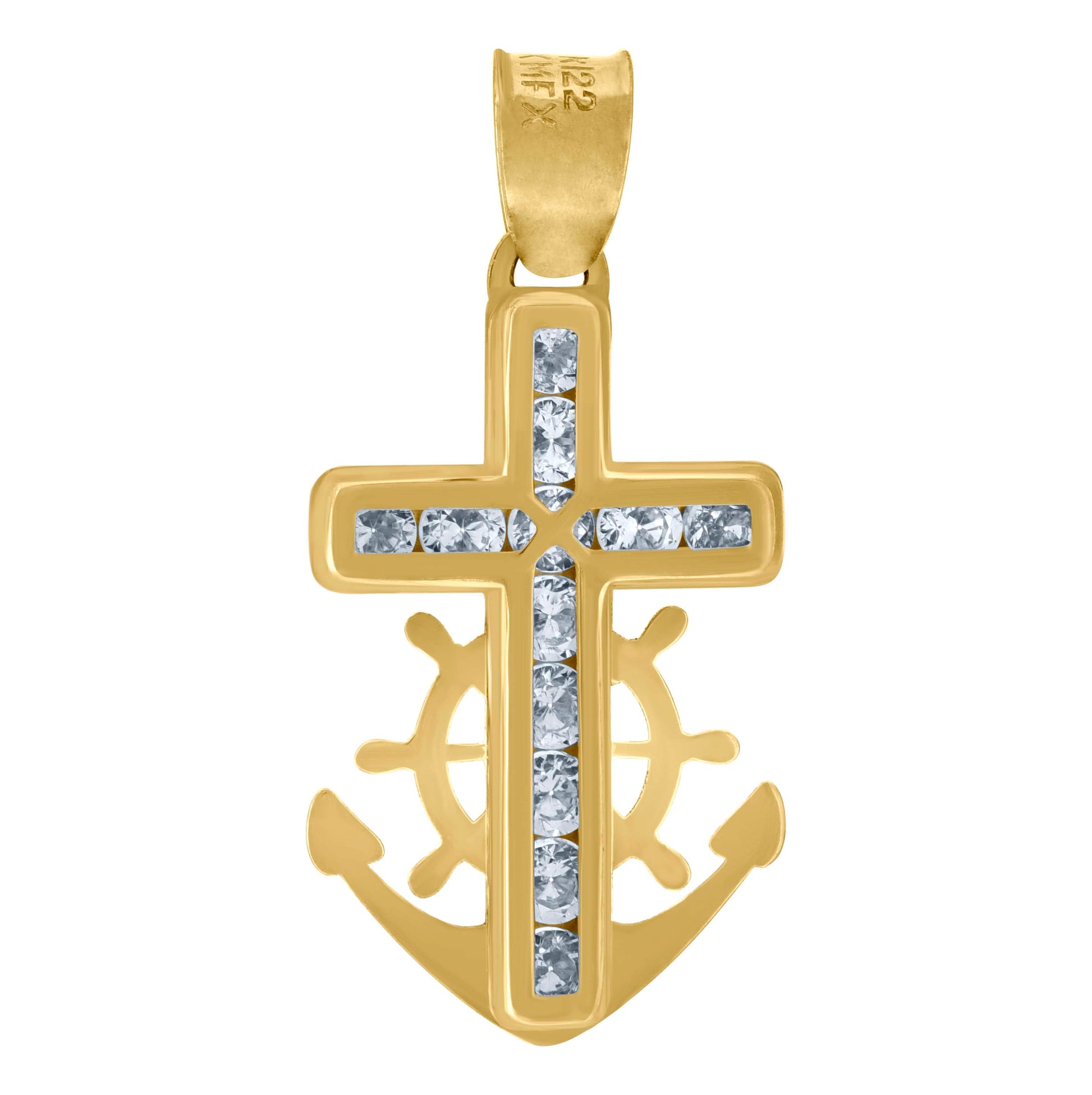 10K Yellow Gold Unisex Cubic-Zirconia Polished Finish Anchor Cross Religious Charm Pendant