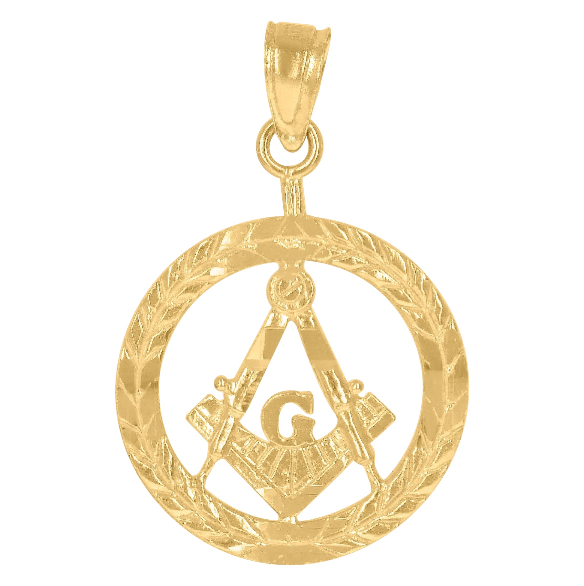 10K Yellow Gold Unisex Freemasonry Masonic Charm Pendant