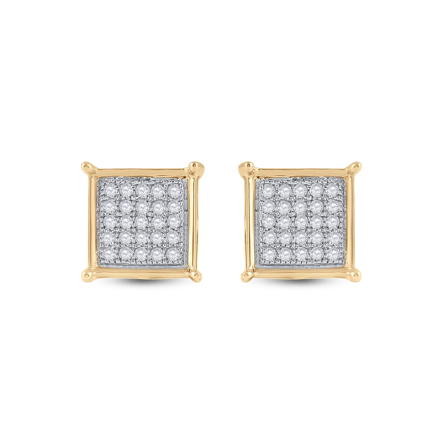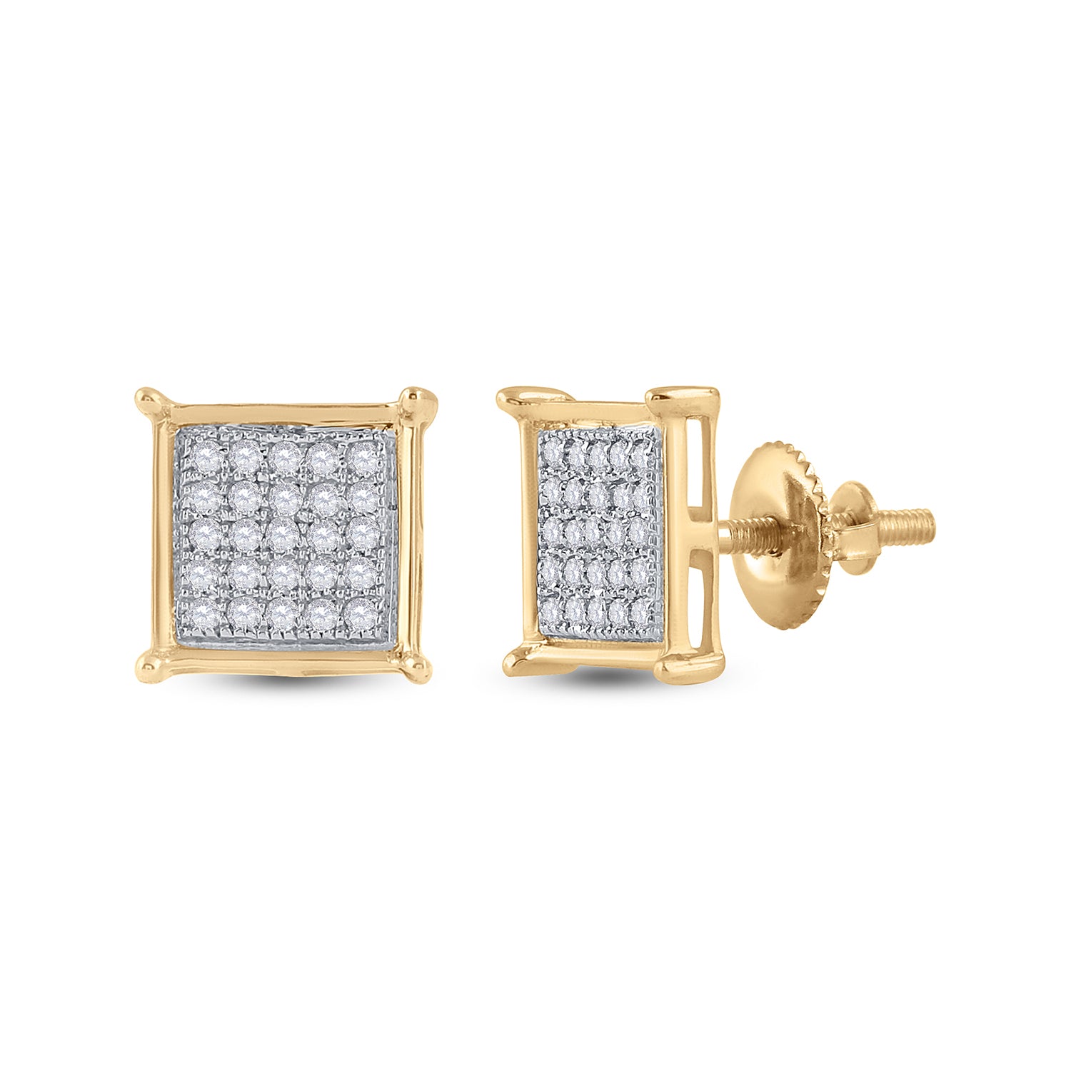 10K Yellow Gold Women's Round Diamond Sq Earrings 1/6ctw