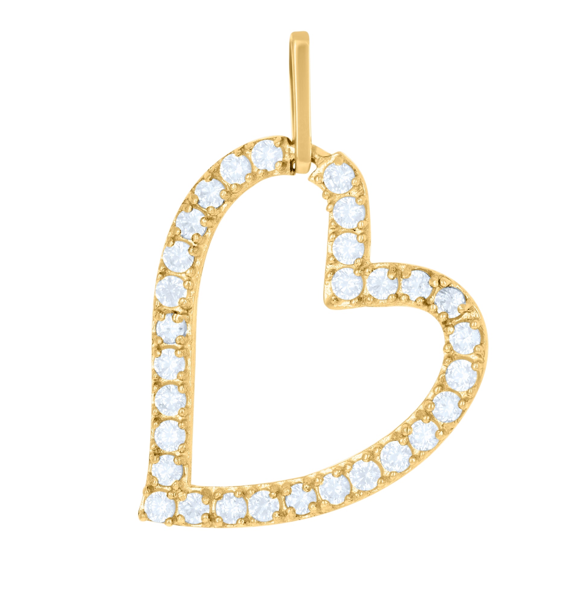 10K Yellow Gold Womens Cubic Zirconia Cubic-Zirconia Open Heart Charm Pendant