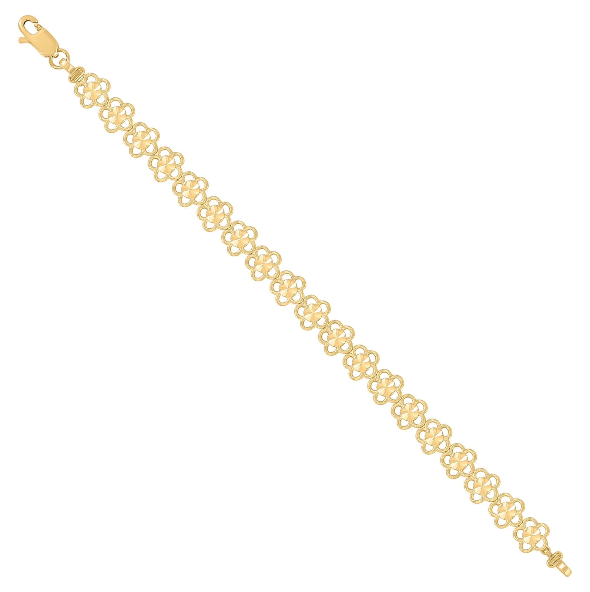 10K Yellow Gold Womens Flower Link 7" Bracelet