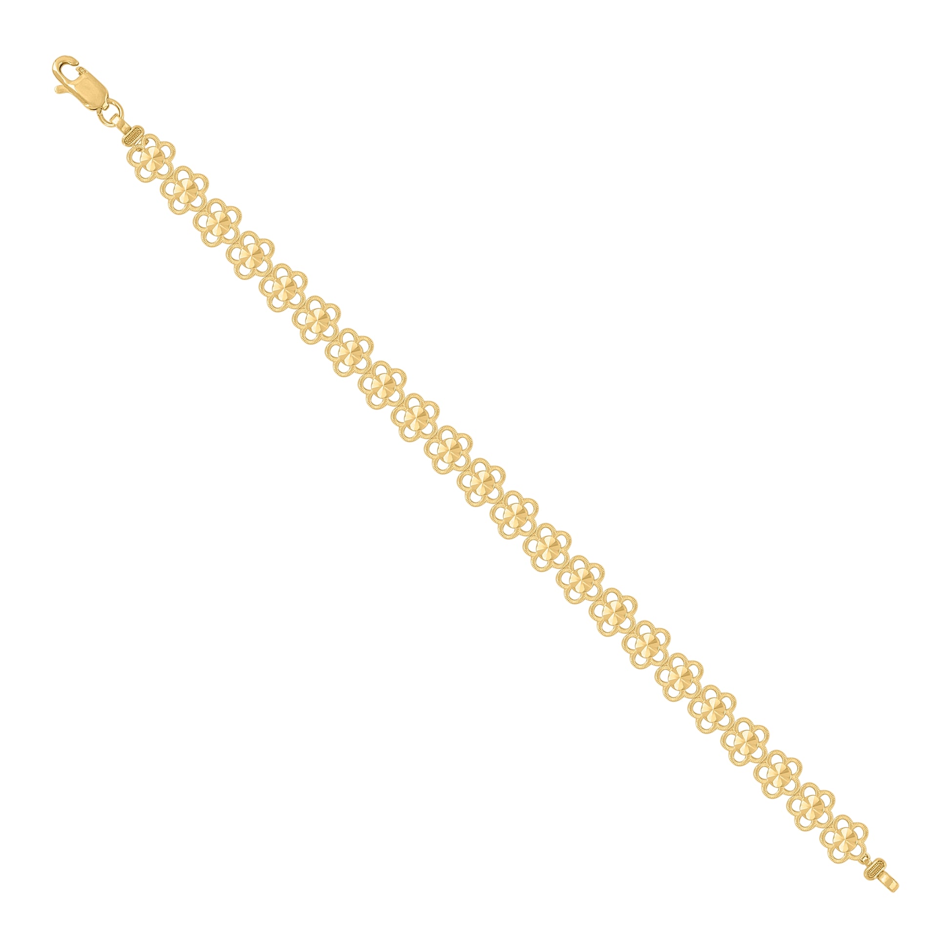 10K Yellow Gold Womens Flower Link 8" Bracelet