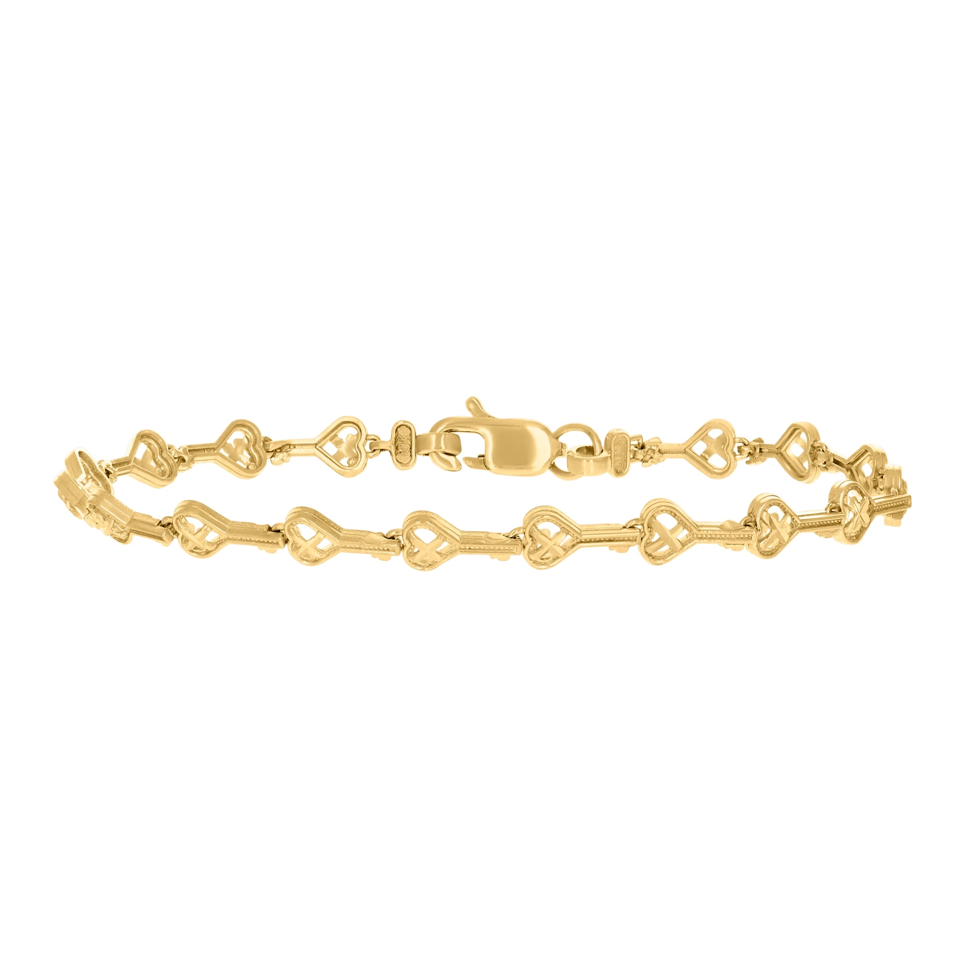 10K Yellow Gold Womens Heart Key Lock & Key Link 7" Bracelet
