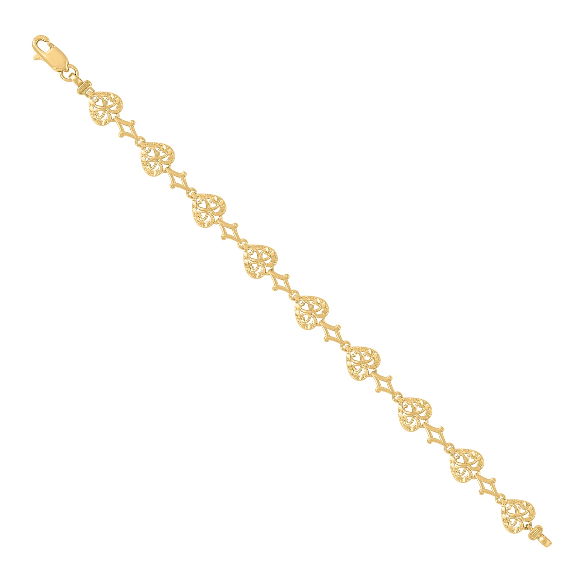 10K Yellow Gold Womens Heart Link 7" Bracelet