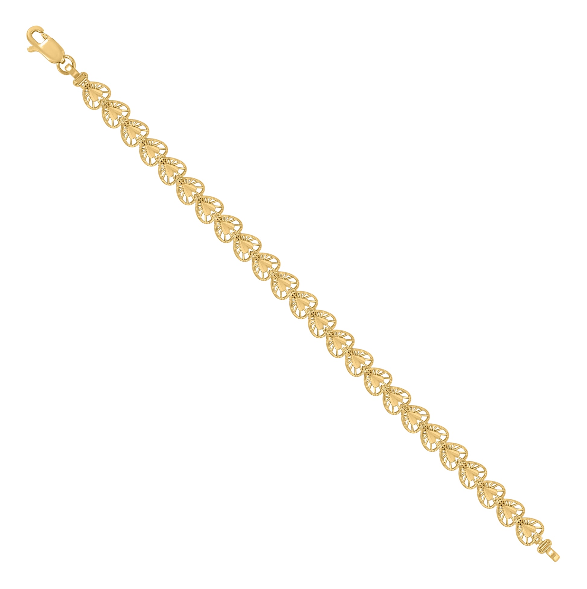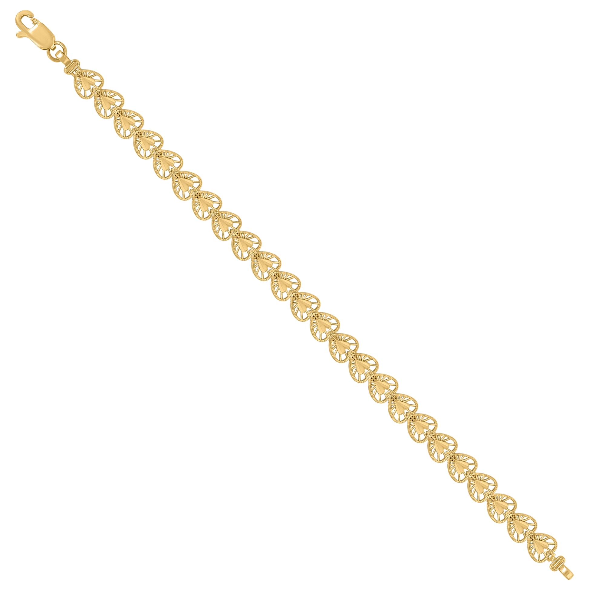 10K Yellow Gold Womens Heart Link 7" Bracelet