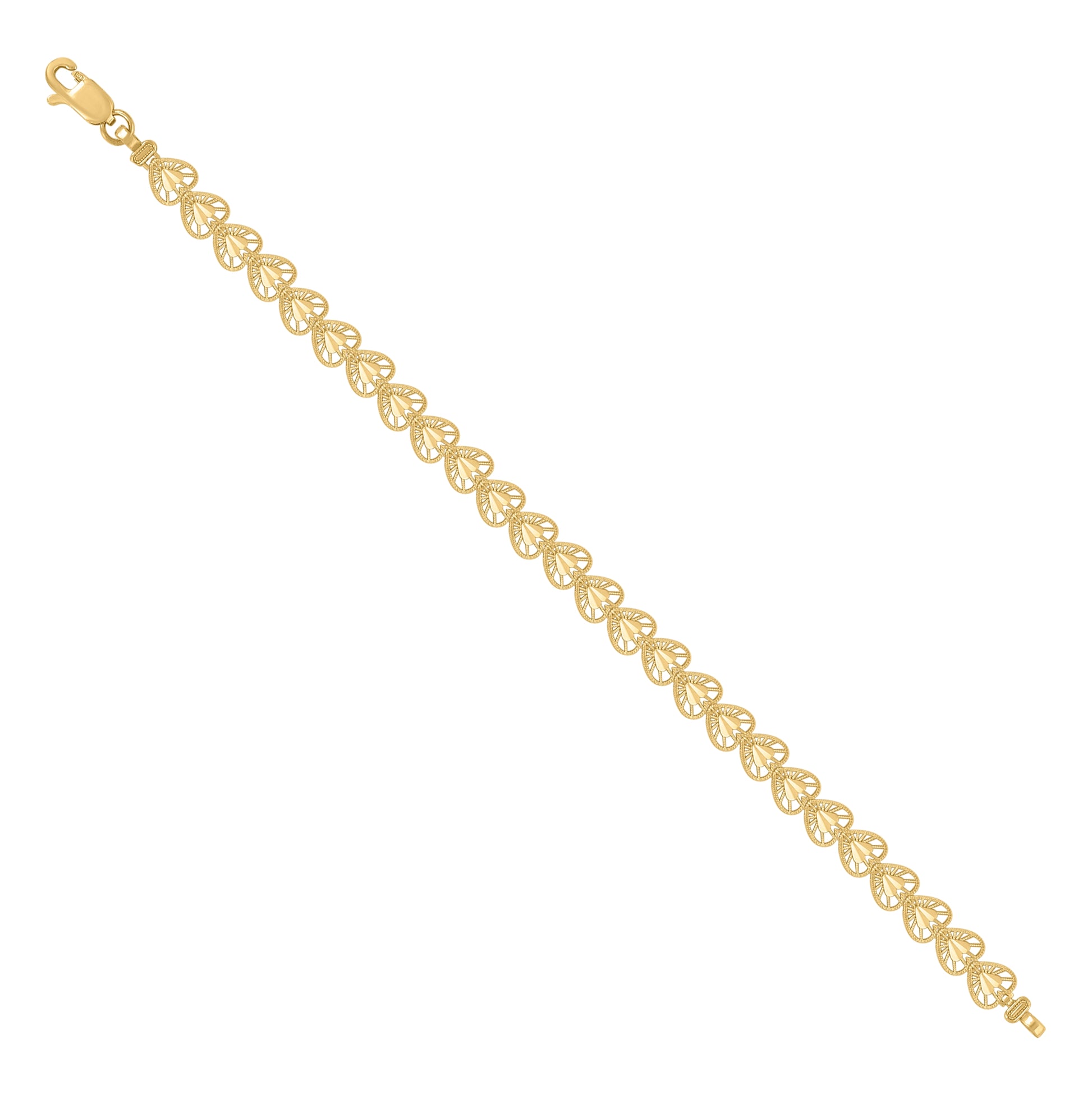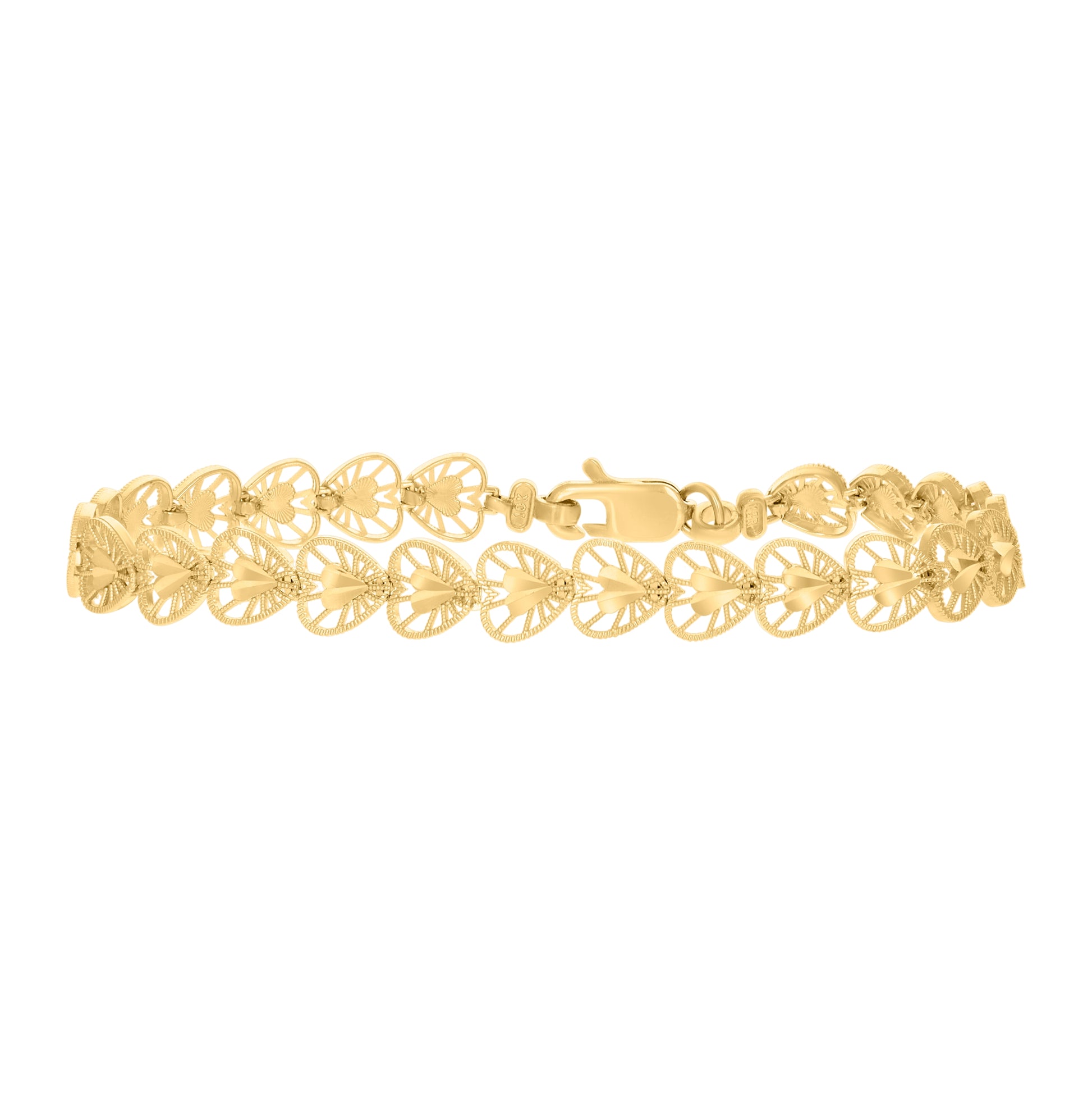 10K Yellow Gold Womens Heart Link 8" Bracelet